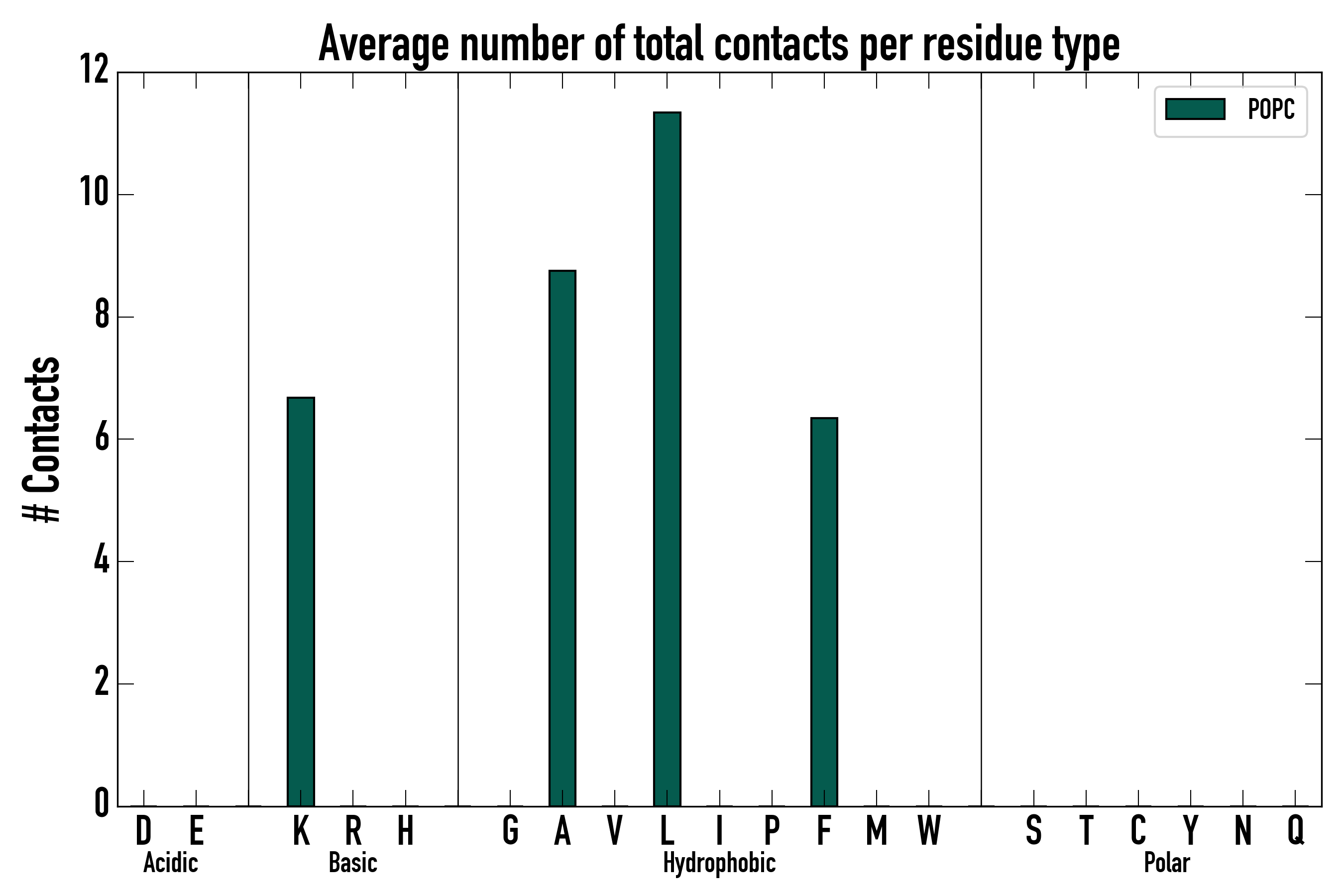 Number of total contacts per residue type: