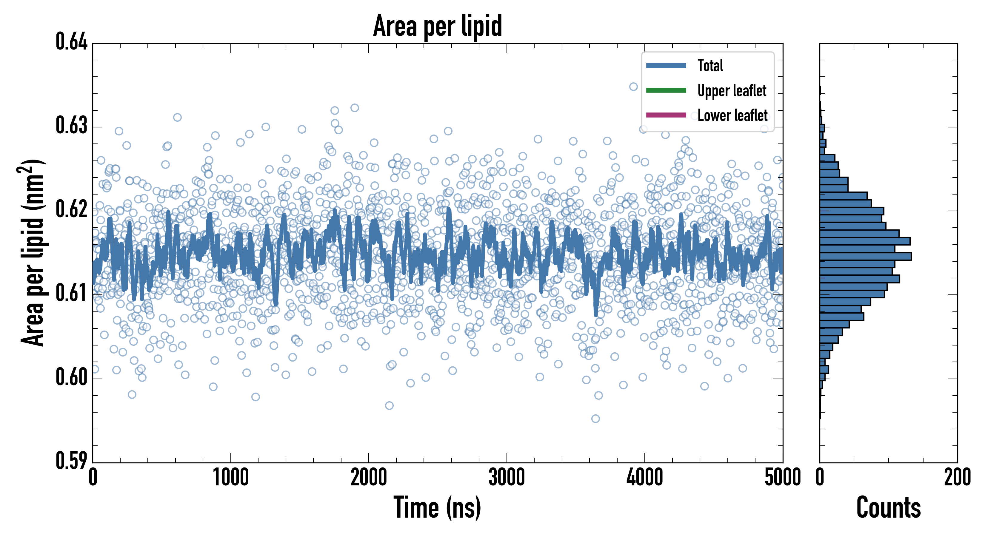 Upper leaflet (nm2): 0.614754000 ± 0.000949033