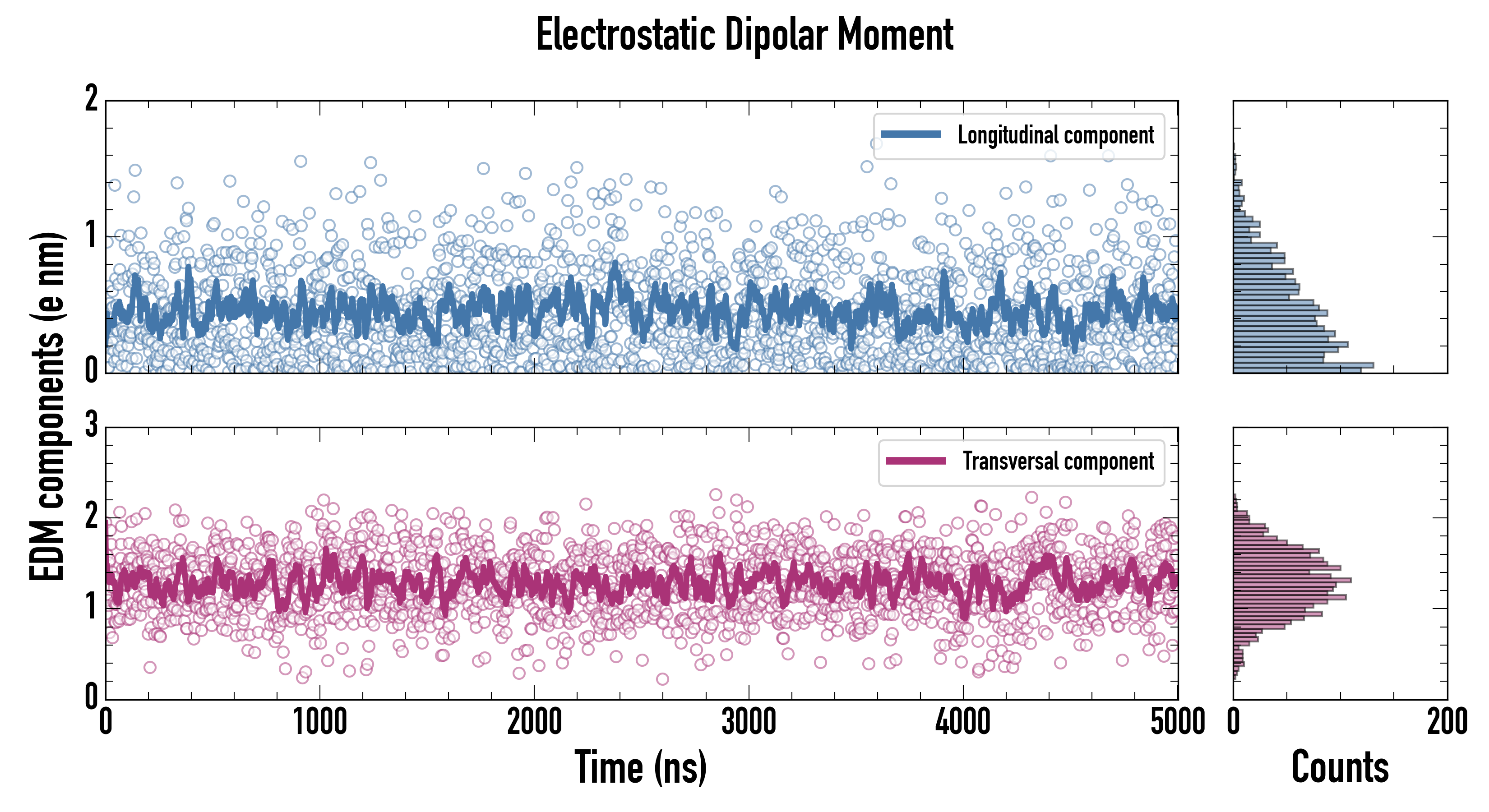 Longitudinal (e nm): 0.95 Transversal (e nm): 1.09 Hydrophobic Dipolar Moment (nm): 3.15