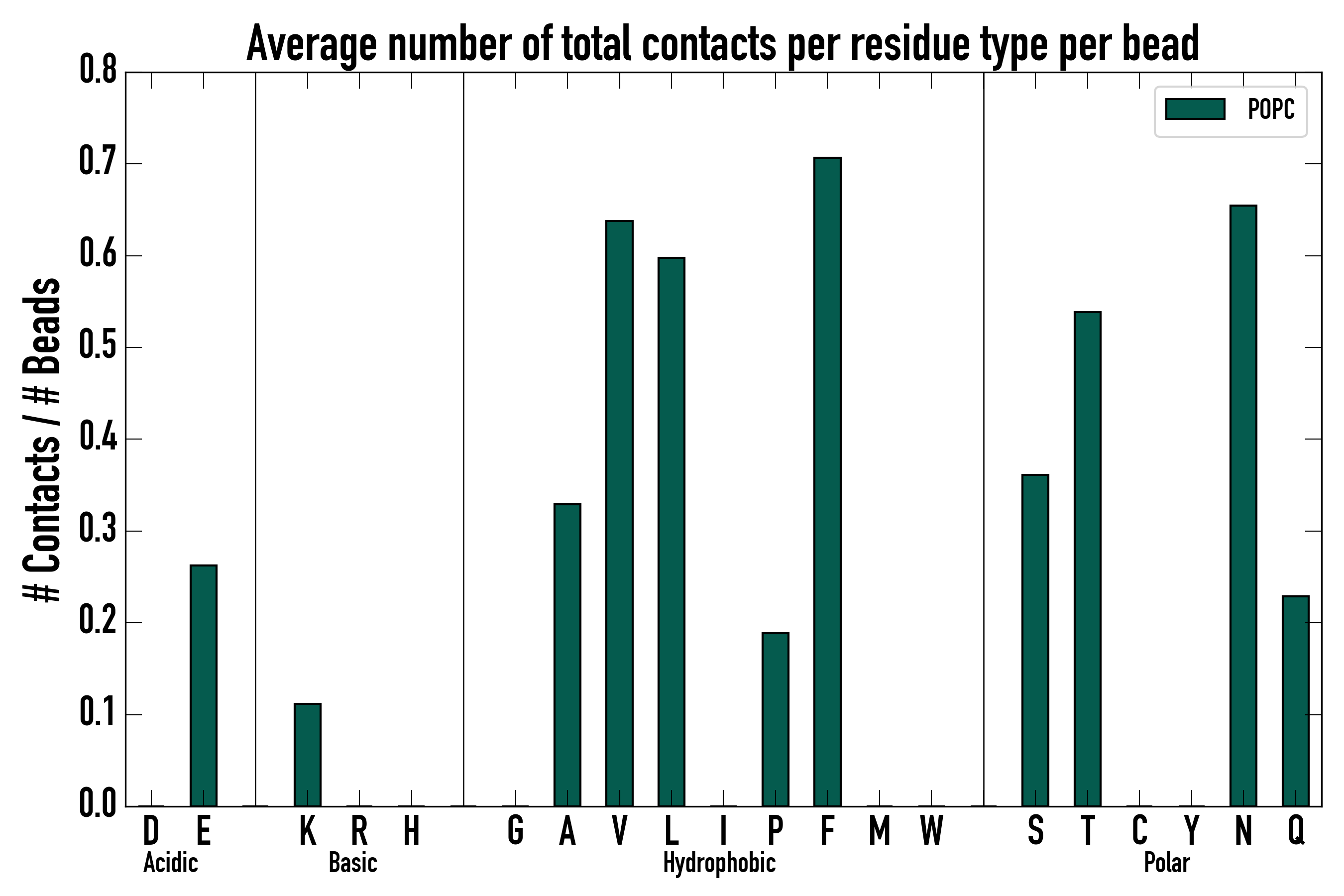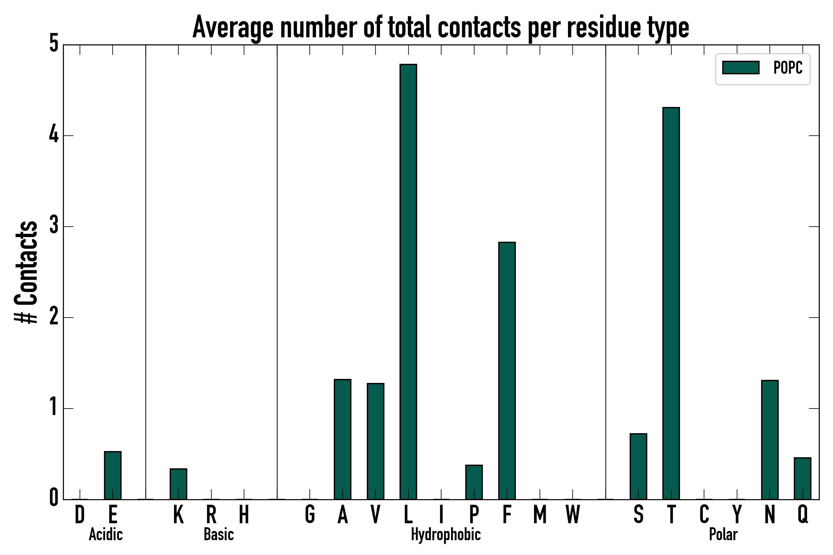 Number of total contacts per residue type: