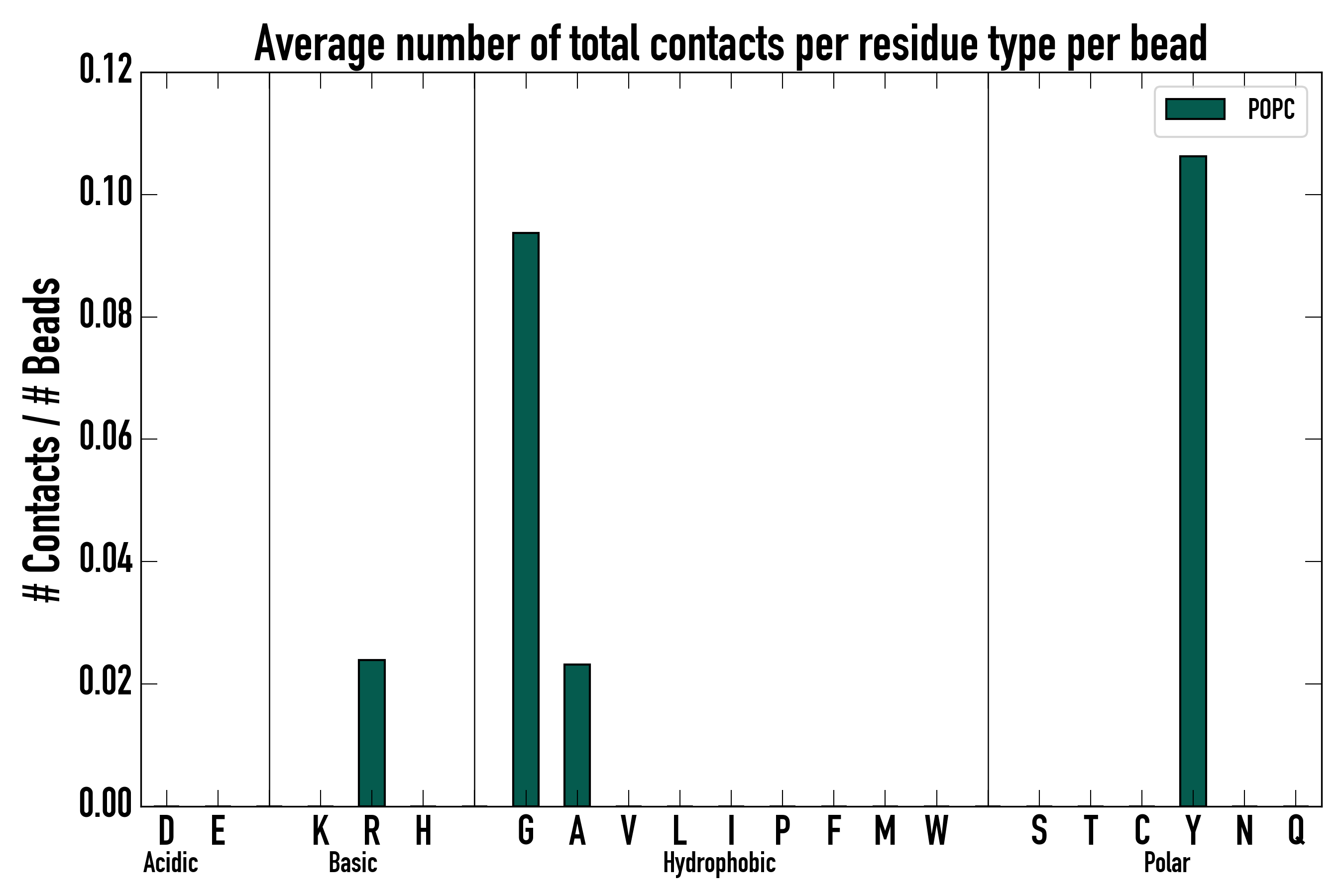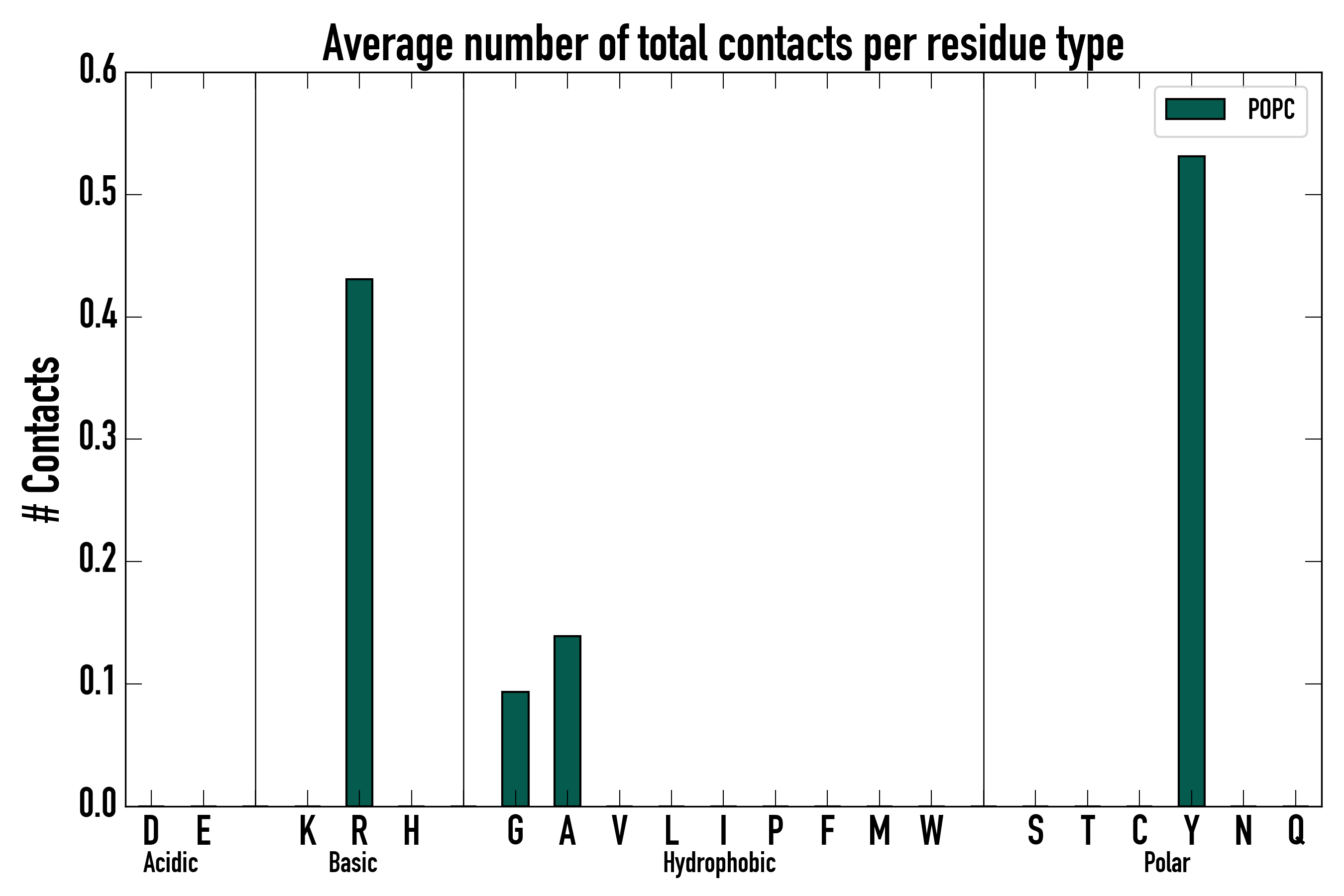 Number of total contacts per residue type: