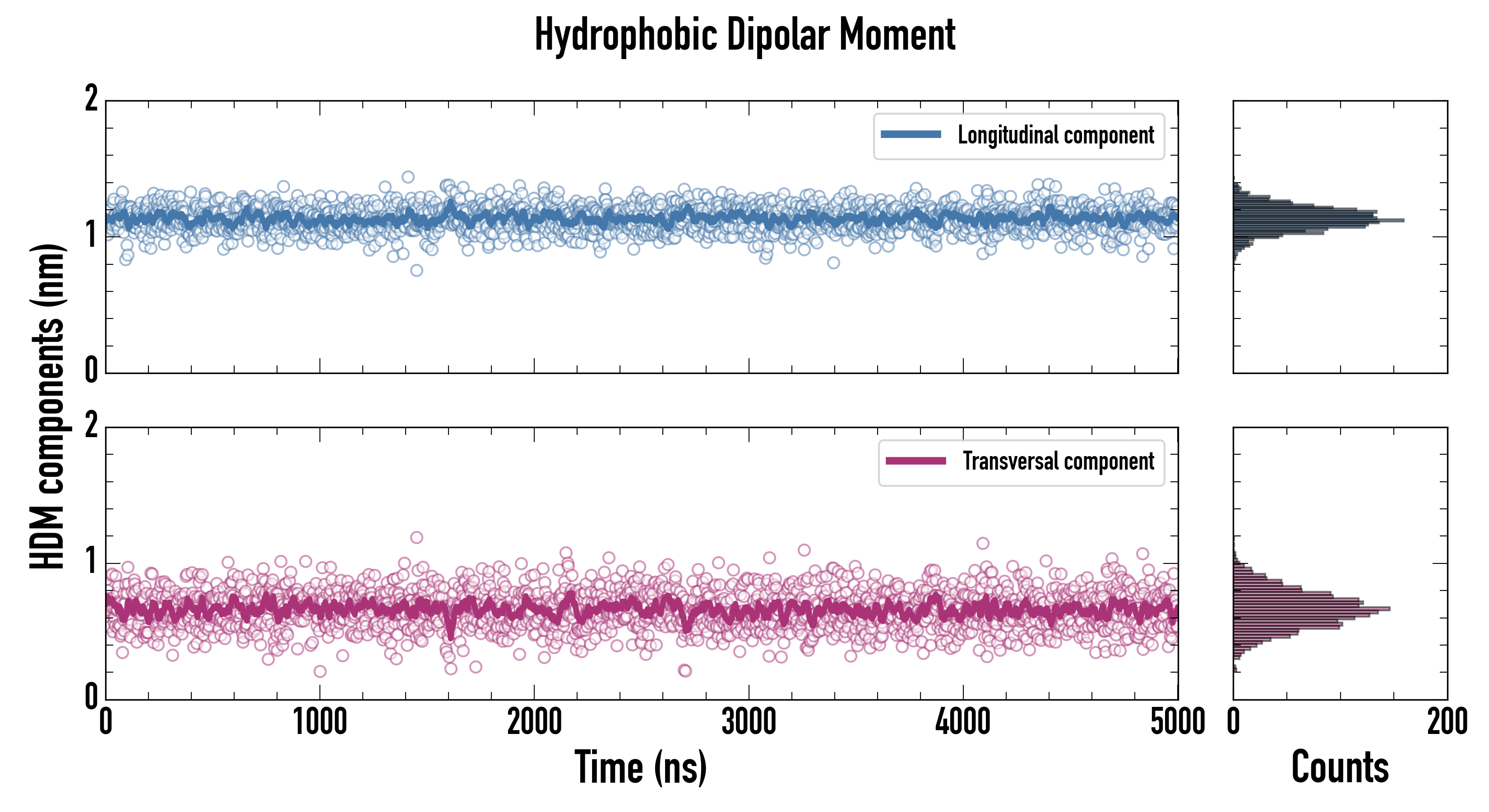 Longitudinal (e nm): 3.62 Transversal (e nm): 1.04 Hydrophobic Dipolar Moment (nm): 1.34