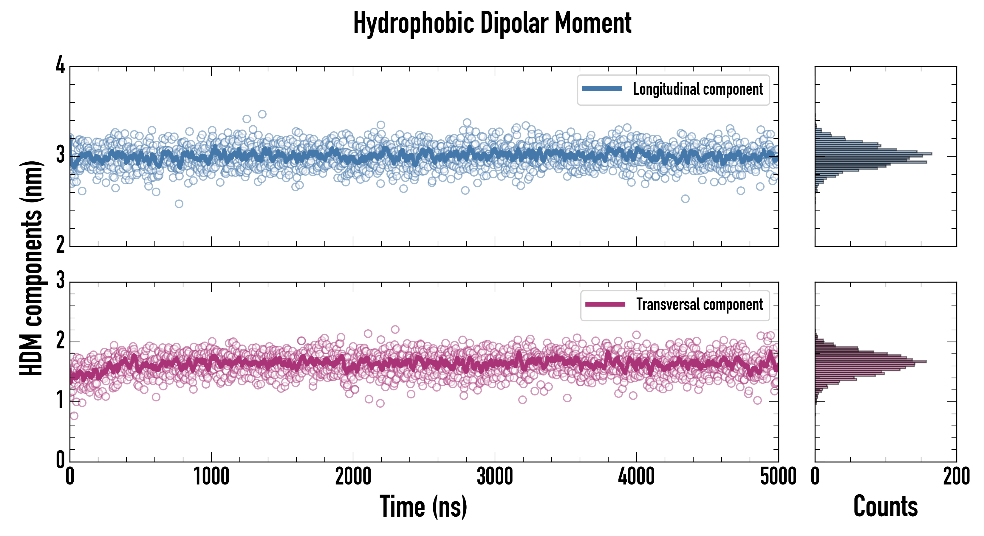 Longitudinal (e nm): 2.06 Transversal (e nm): 1.99 Hydrophobic Dipolar Moment (nm): 3.53