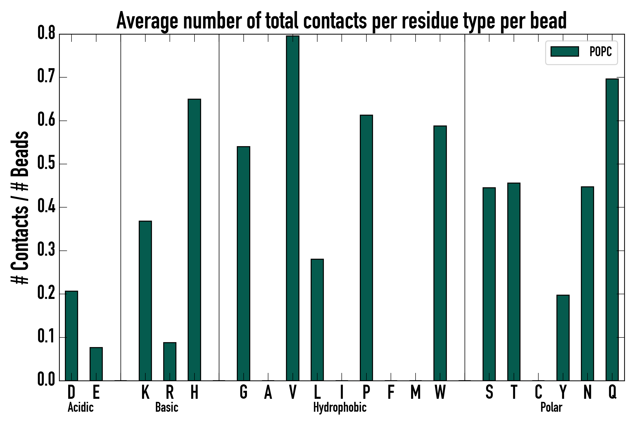 Number of total contacts per residue type: