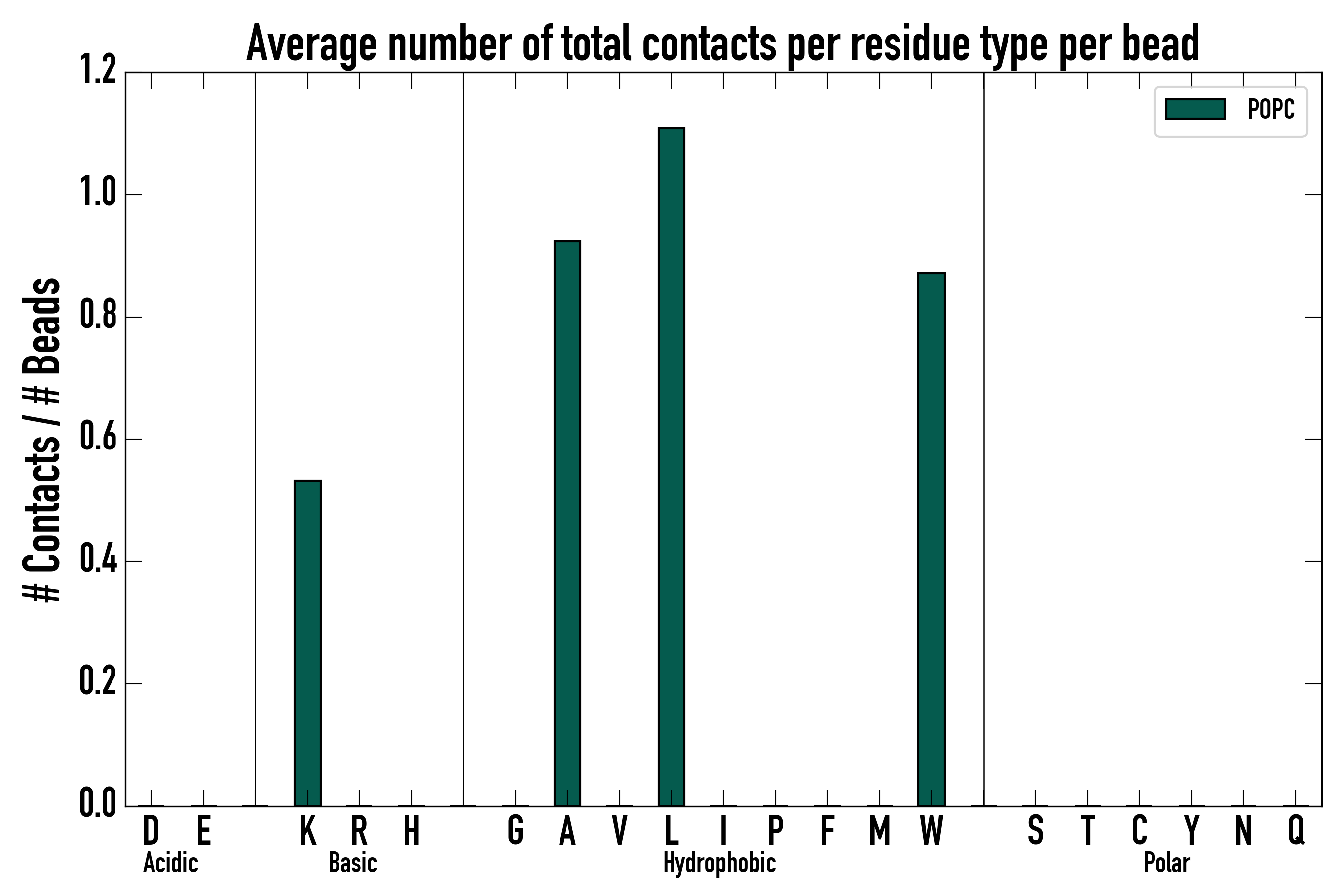 Number of total contacts per residue type: