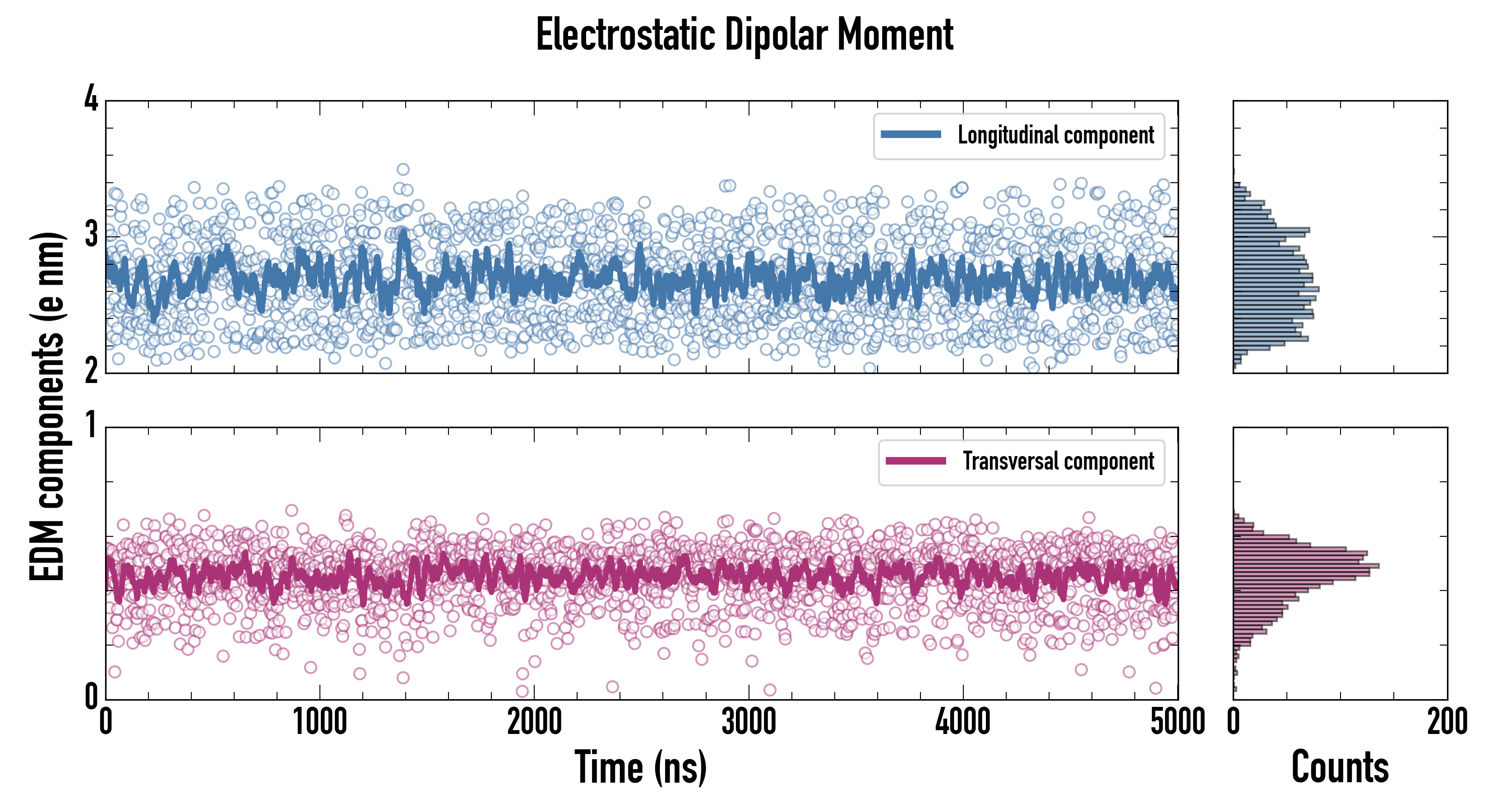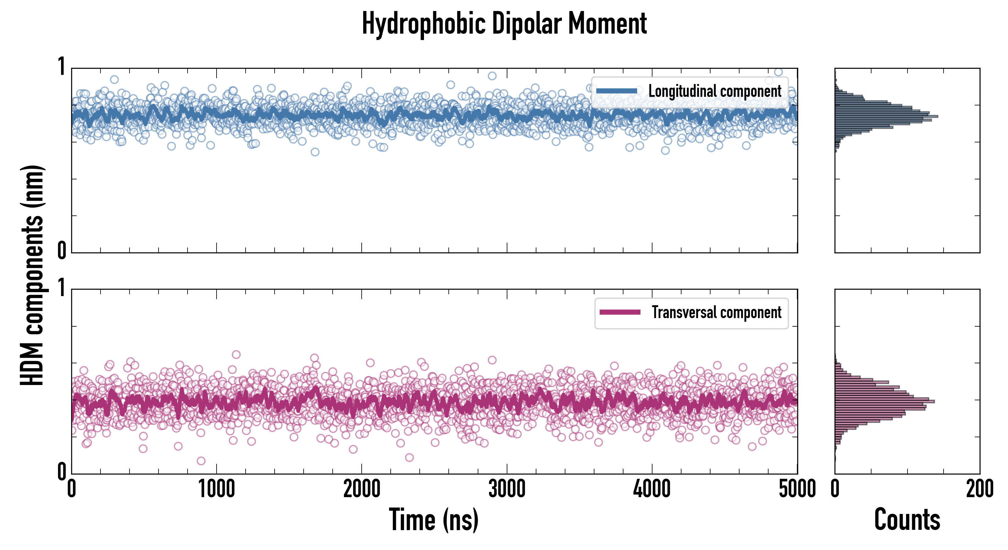 Longitudinal (e nm): 3.15 Transversal (e nm): 0.78 Hydrophobic Dipolar Moment (nm): 0.81