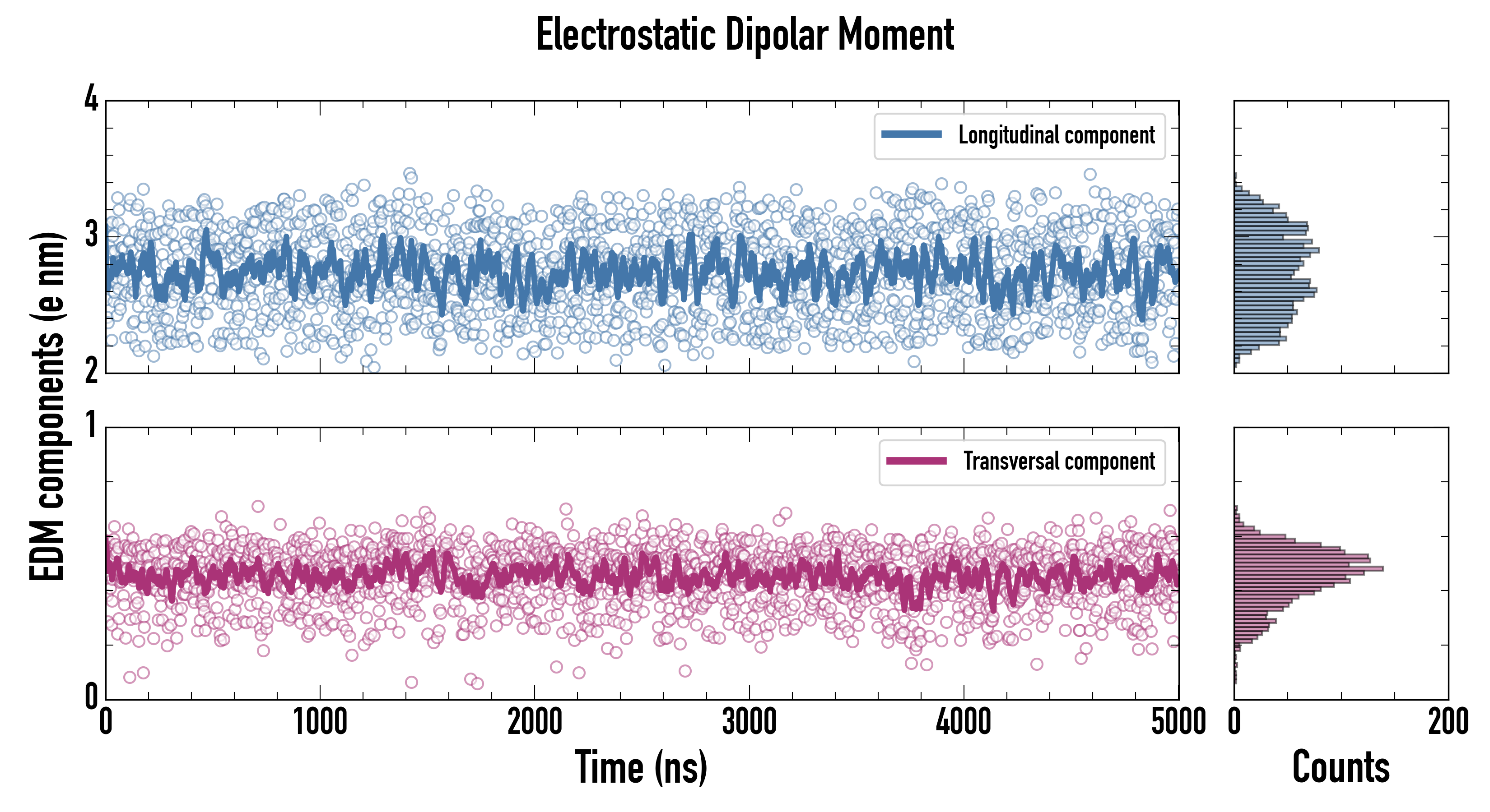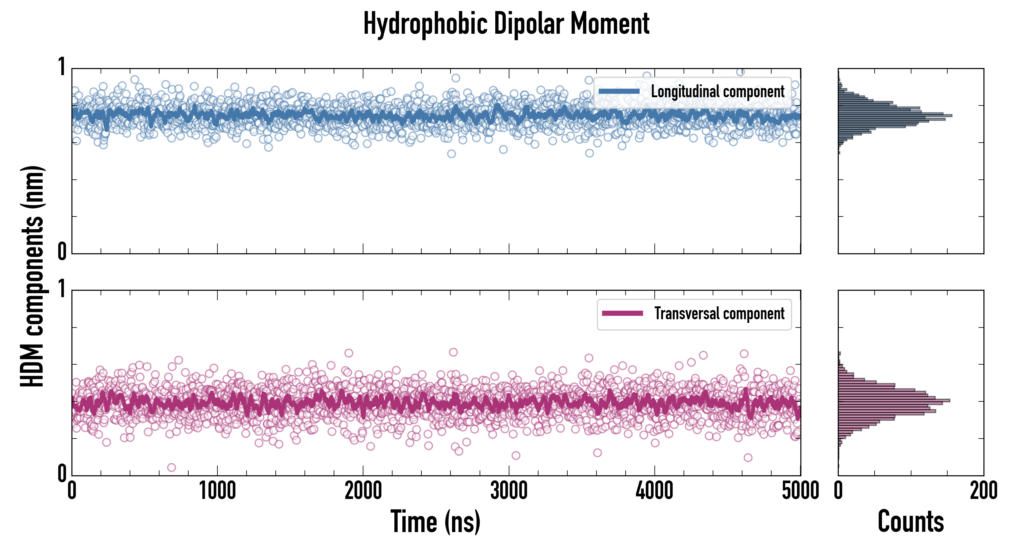Longitudinal (e nm): 3.15 Transversal (e nm): 0.78 Hydrophobic Dipolar Moment (nm): 0.81