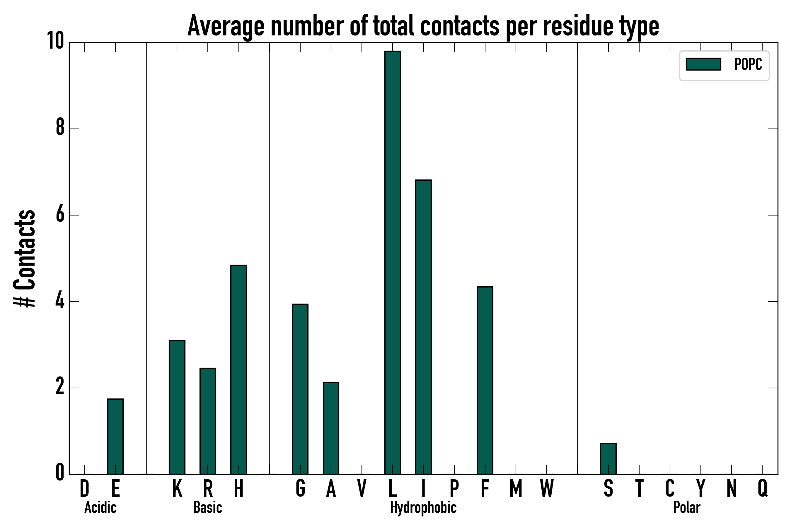 Number of total contacts per residue type:
