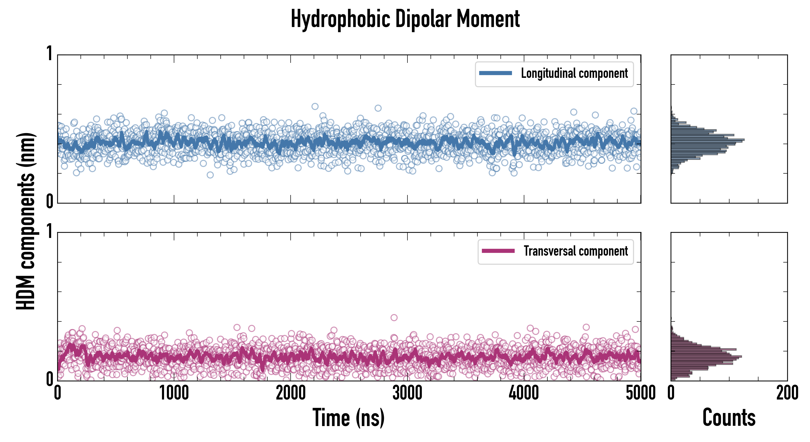 Longitudinal (e nm): 4.41 Transversal (e nm): 0.18 Hydrophobic Dipolar Moment (nm): 0.42