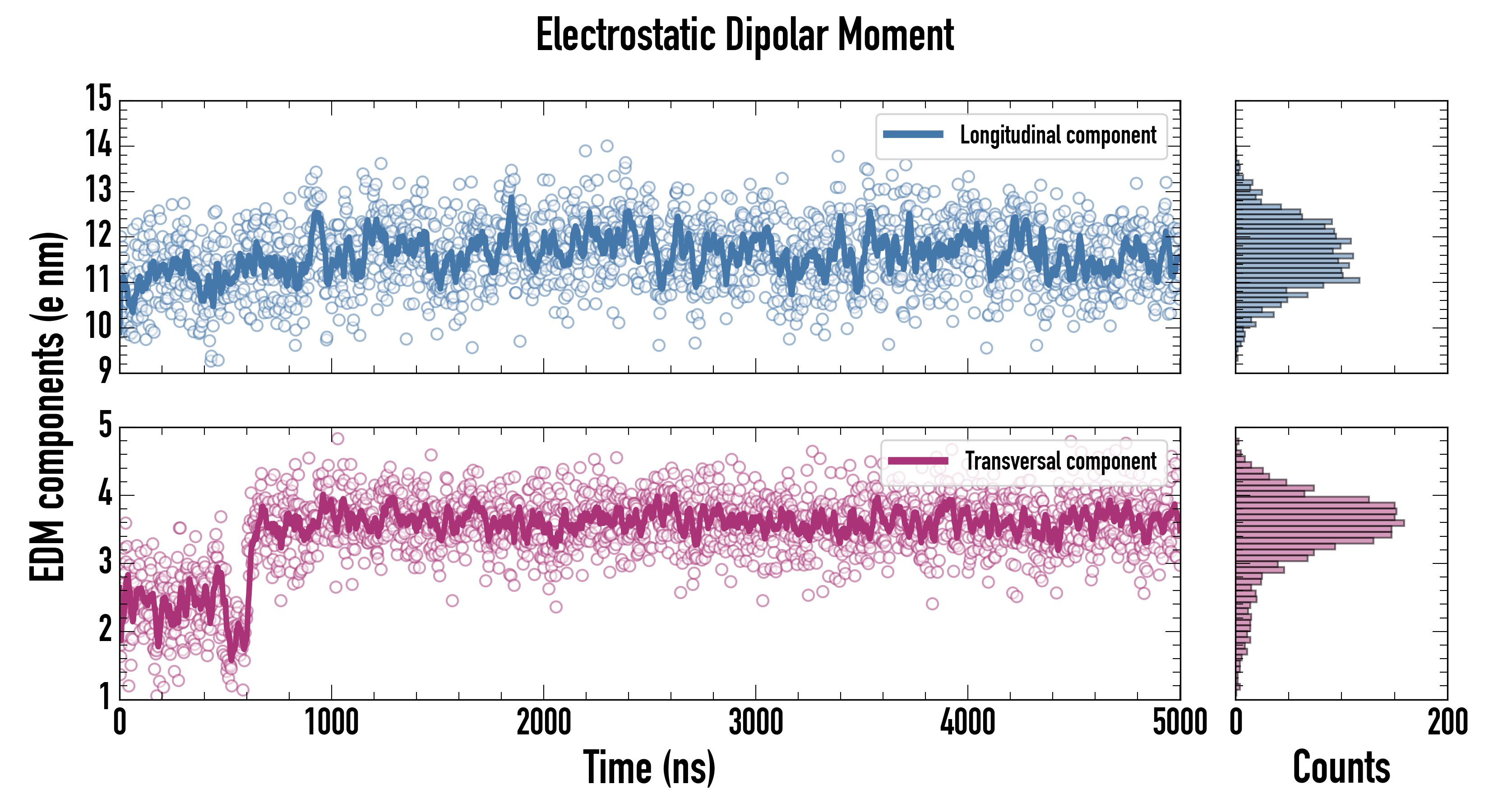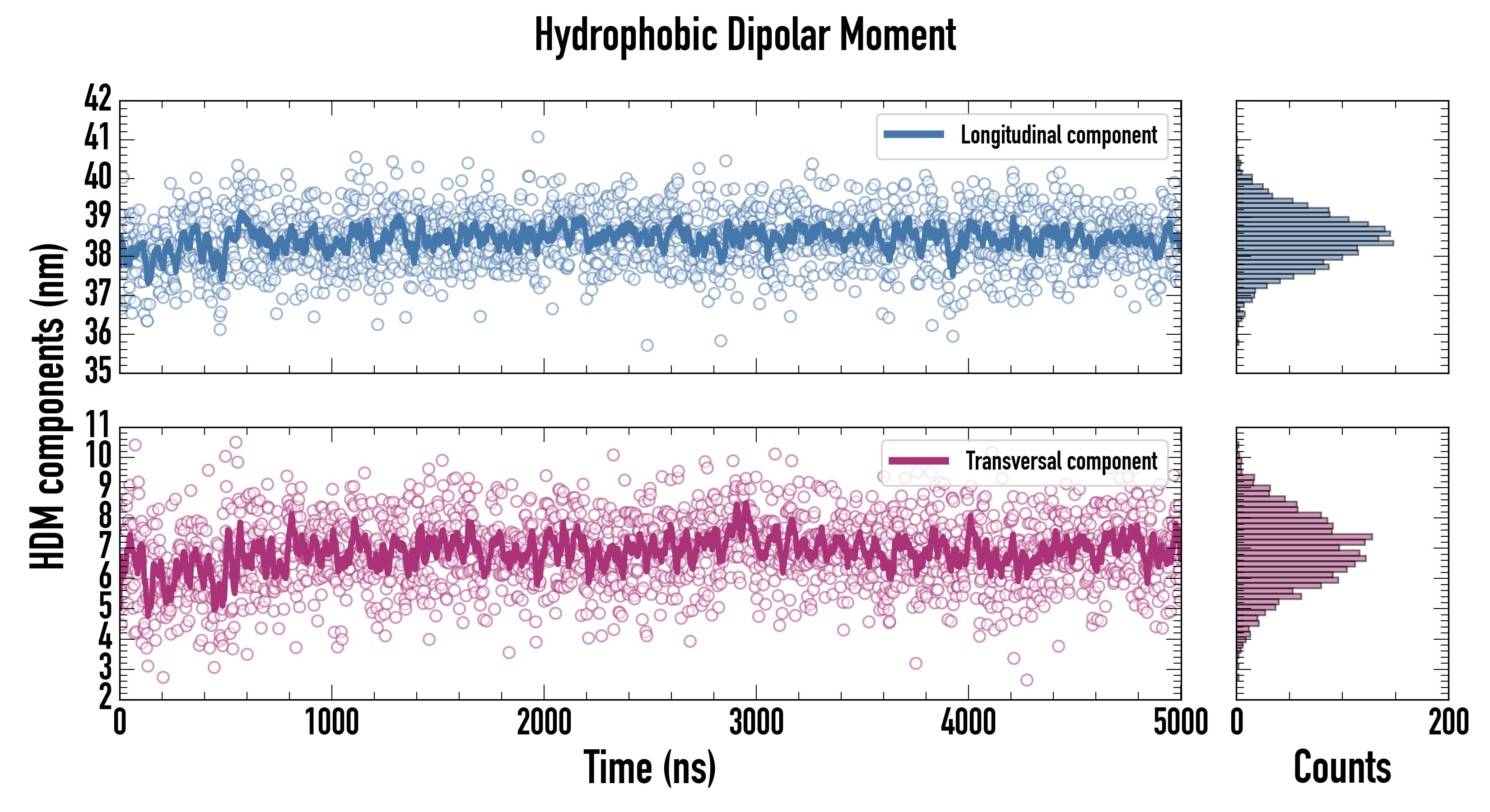Longitudinal (e nm): 14.3 Transversal (e nm): 2.85 Hydrophobic Dipolar Moment (nm): 39.9