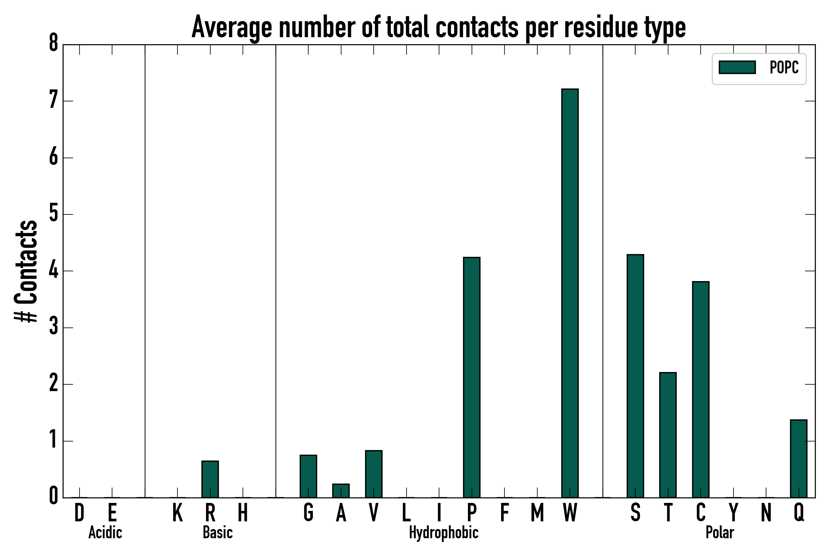 Number of total contacts per residue type: