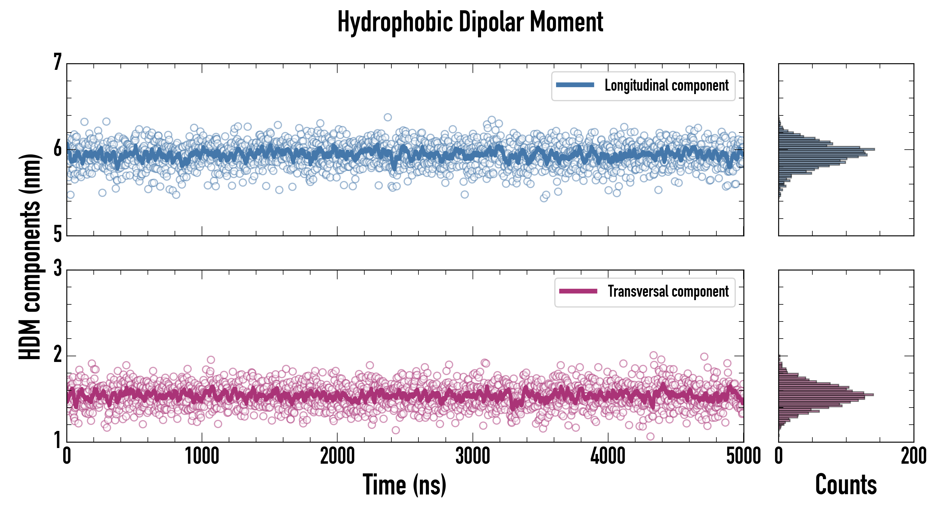 Longitudinal (e nm): 2.18 Transversal (e nm): 1.7 Hydrophobic Dipolar Moment (nm): 6.48