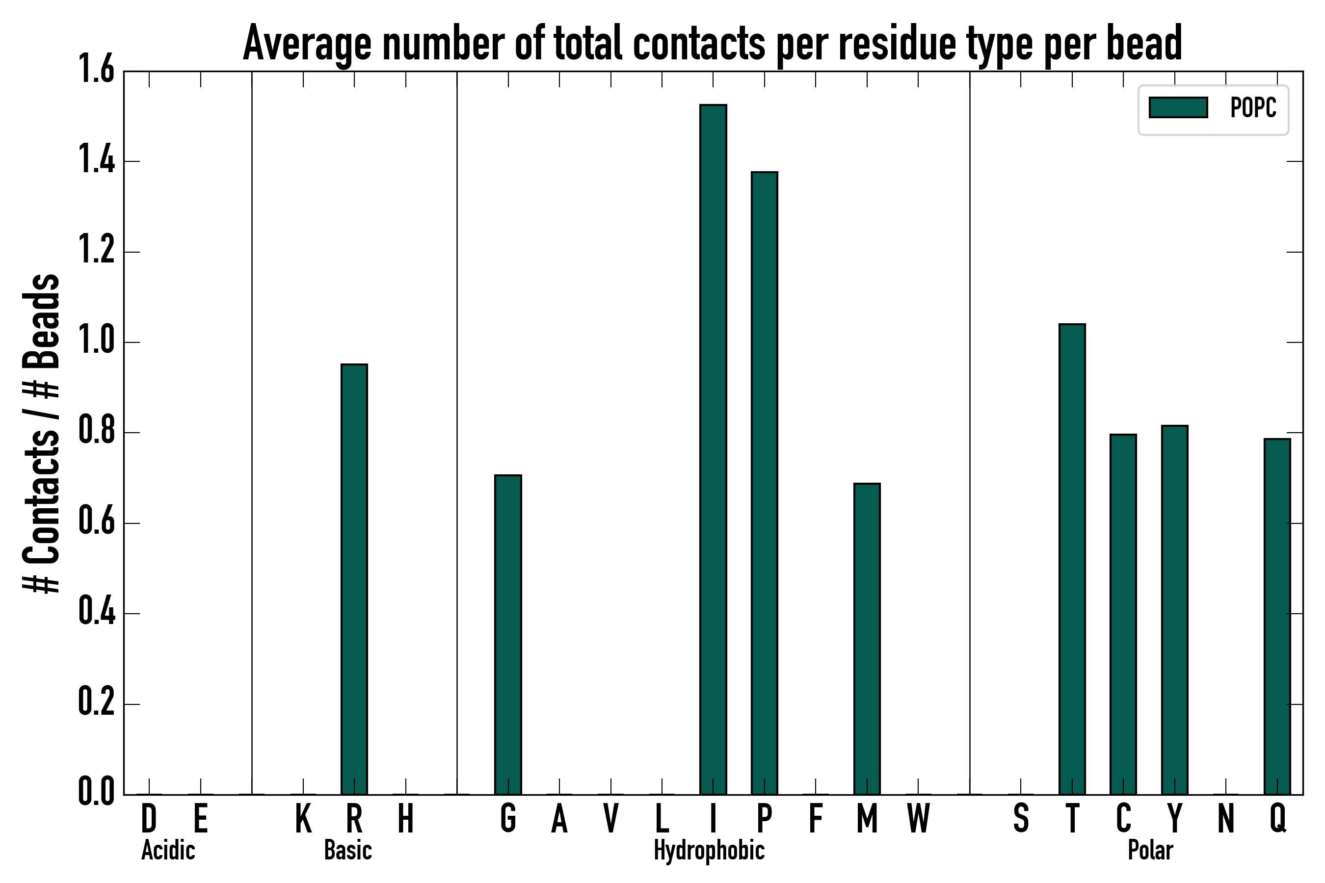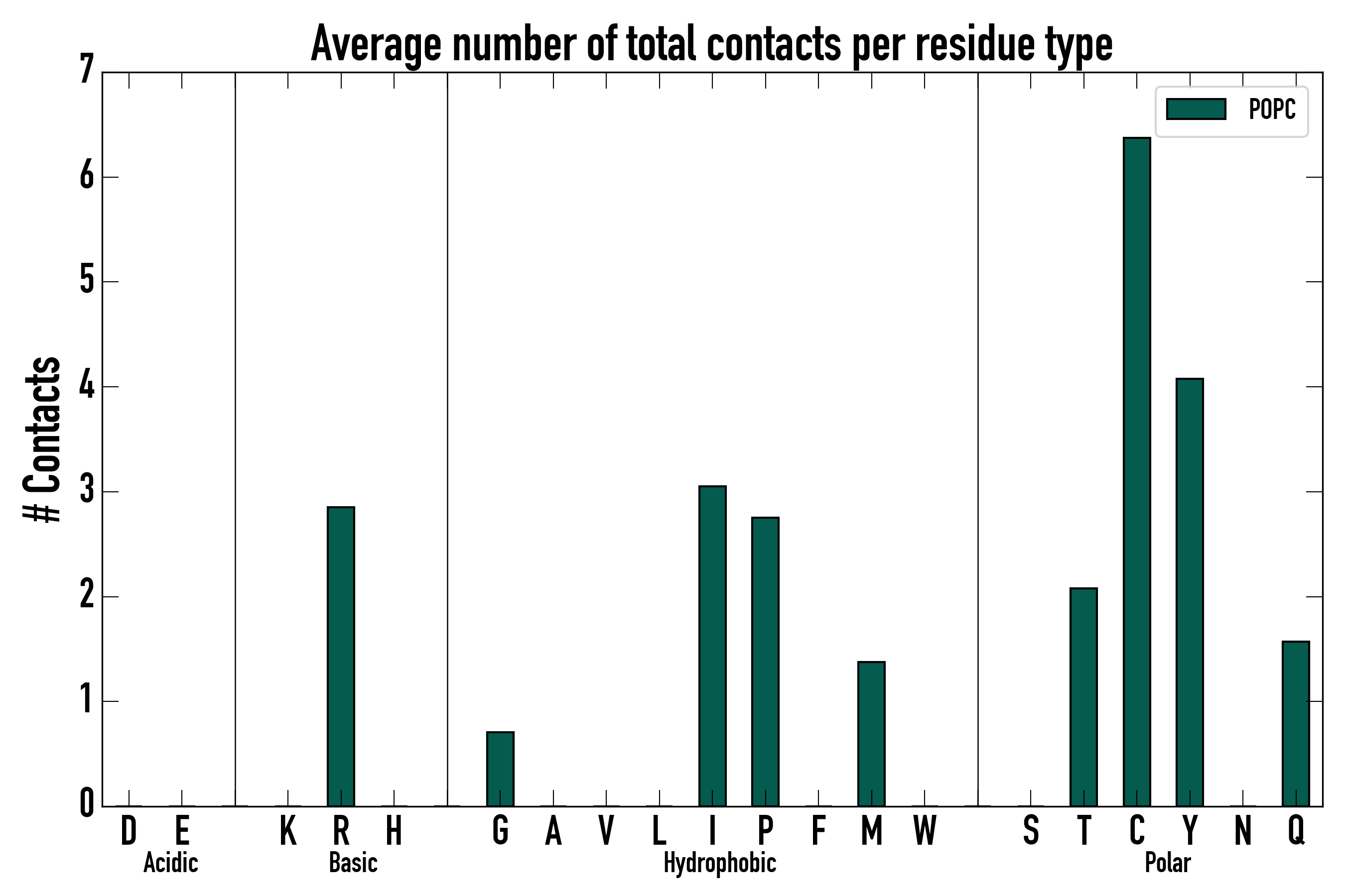 Number of total contacts per residue type: