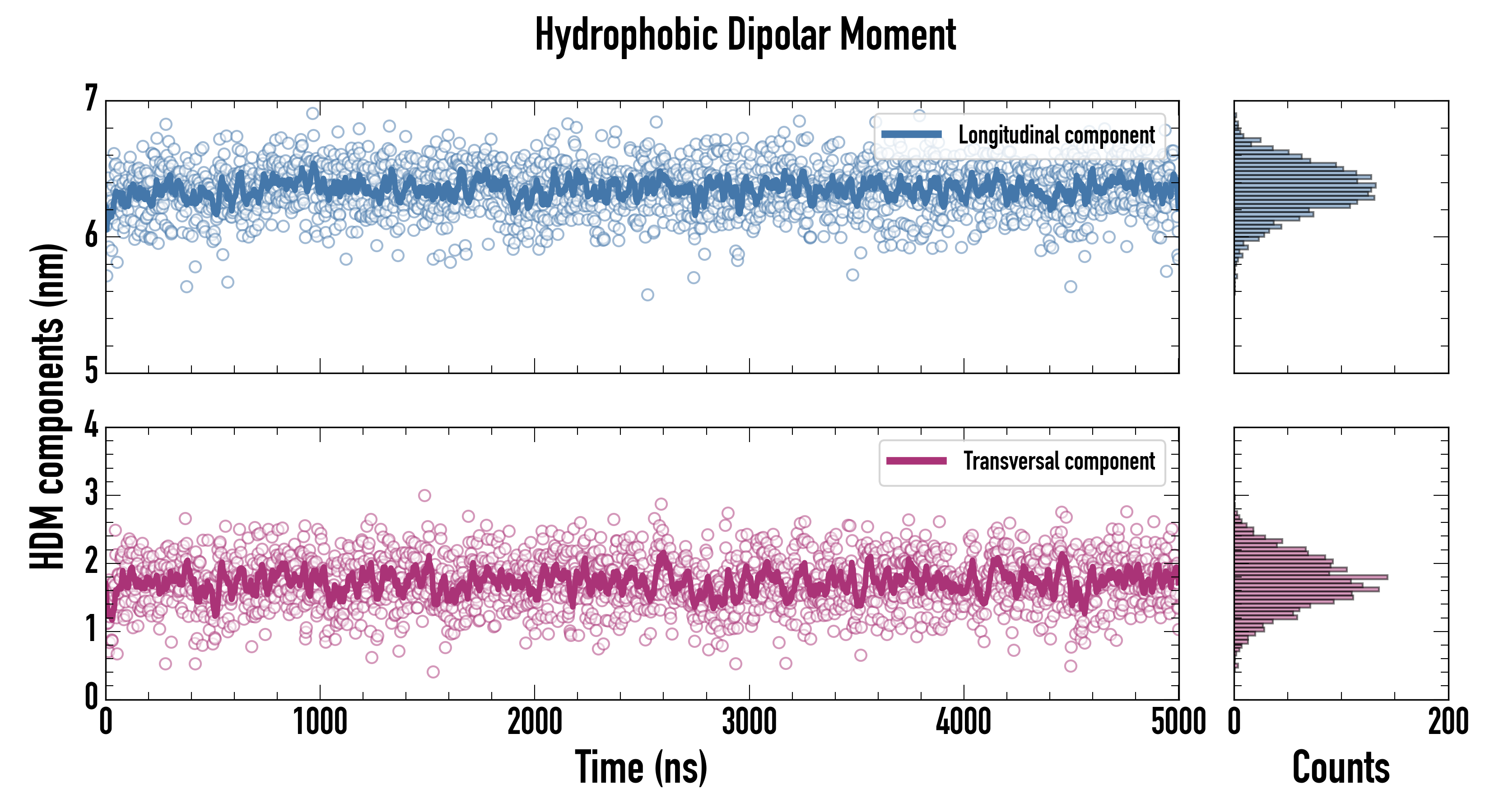 Longitudinal (e nm): 6.55 Transversal (e nm): 0.59 Hydrophobic Dipolar Moment (nm): 6.91
