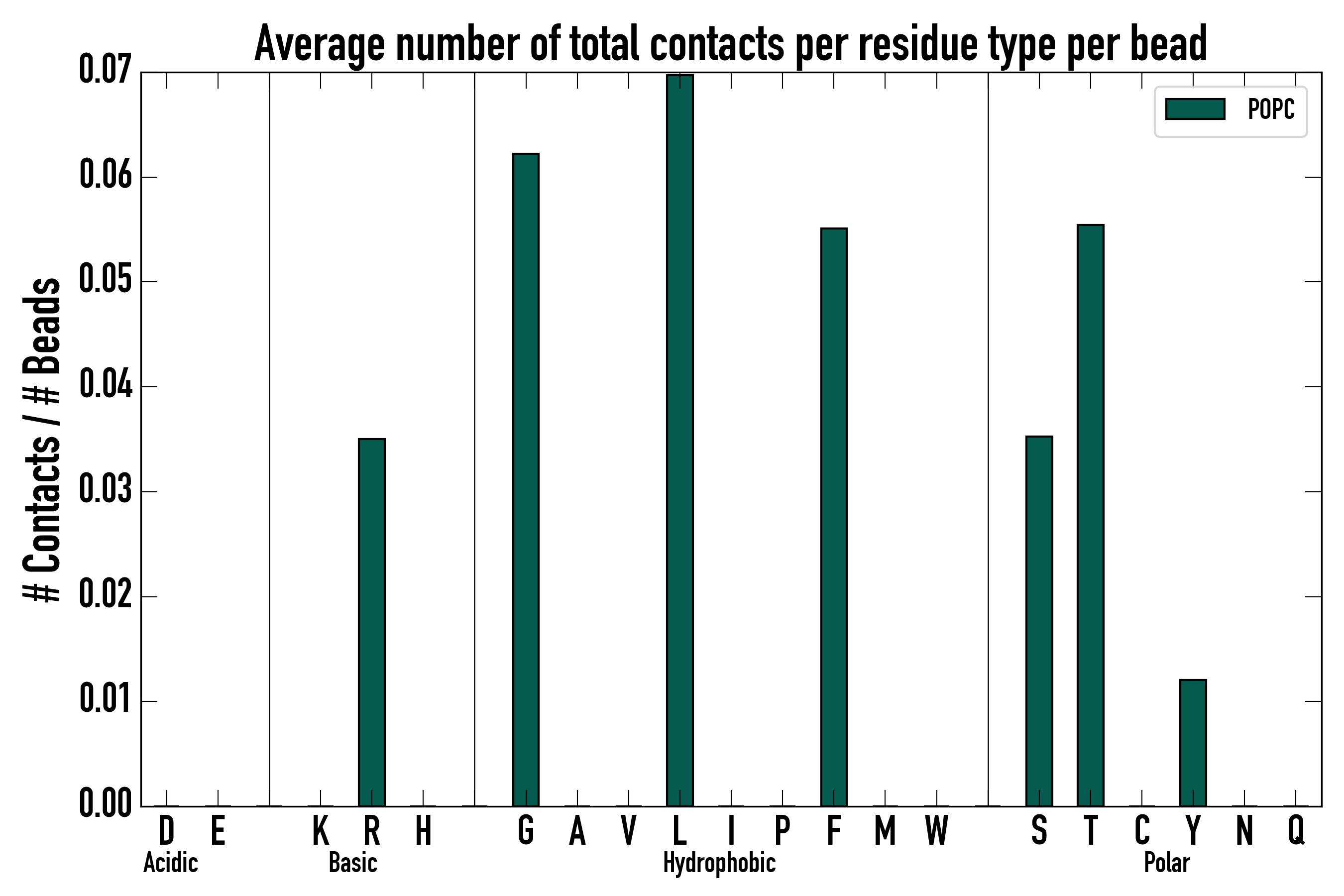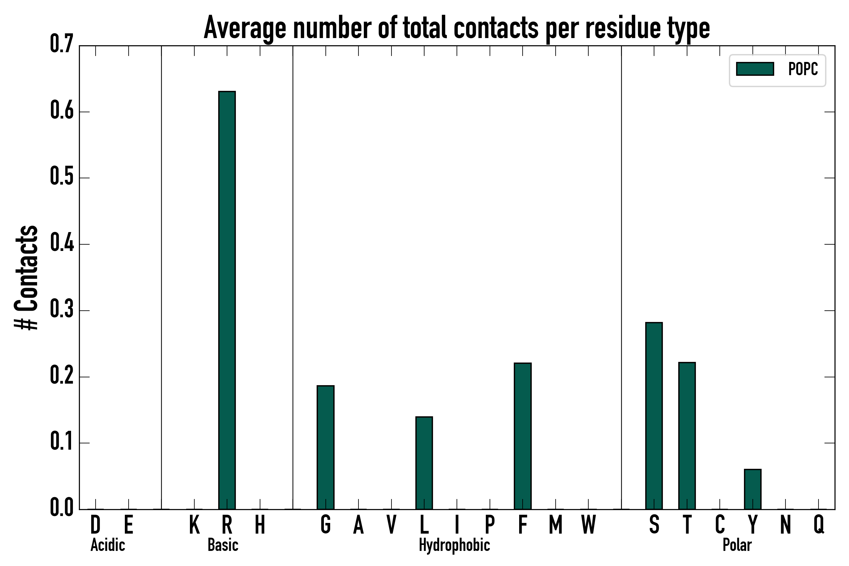 Number of total contacts per residue type:
