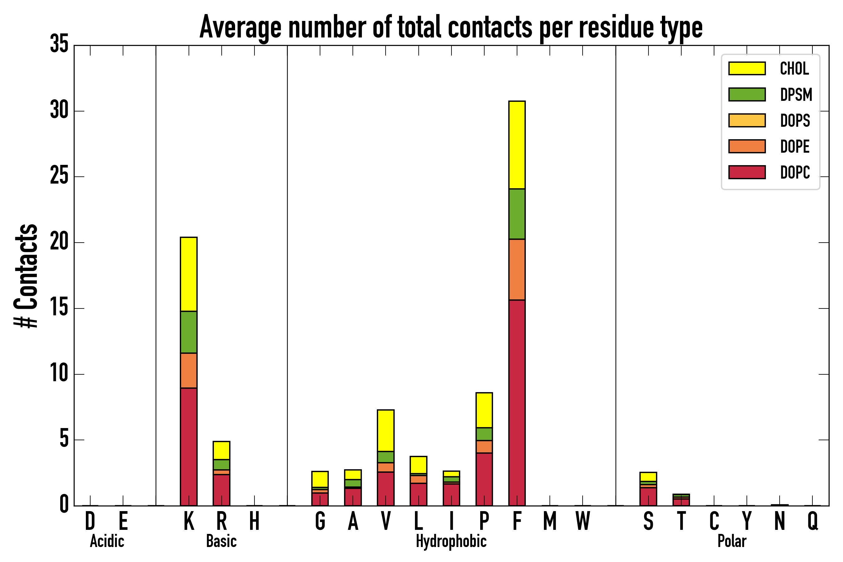 Number of total contacts per residue type: