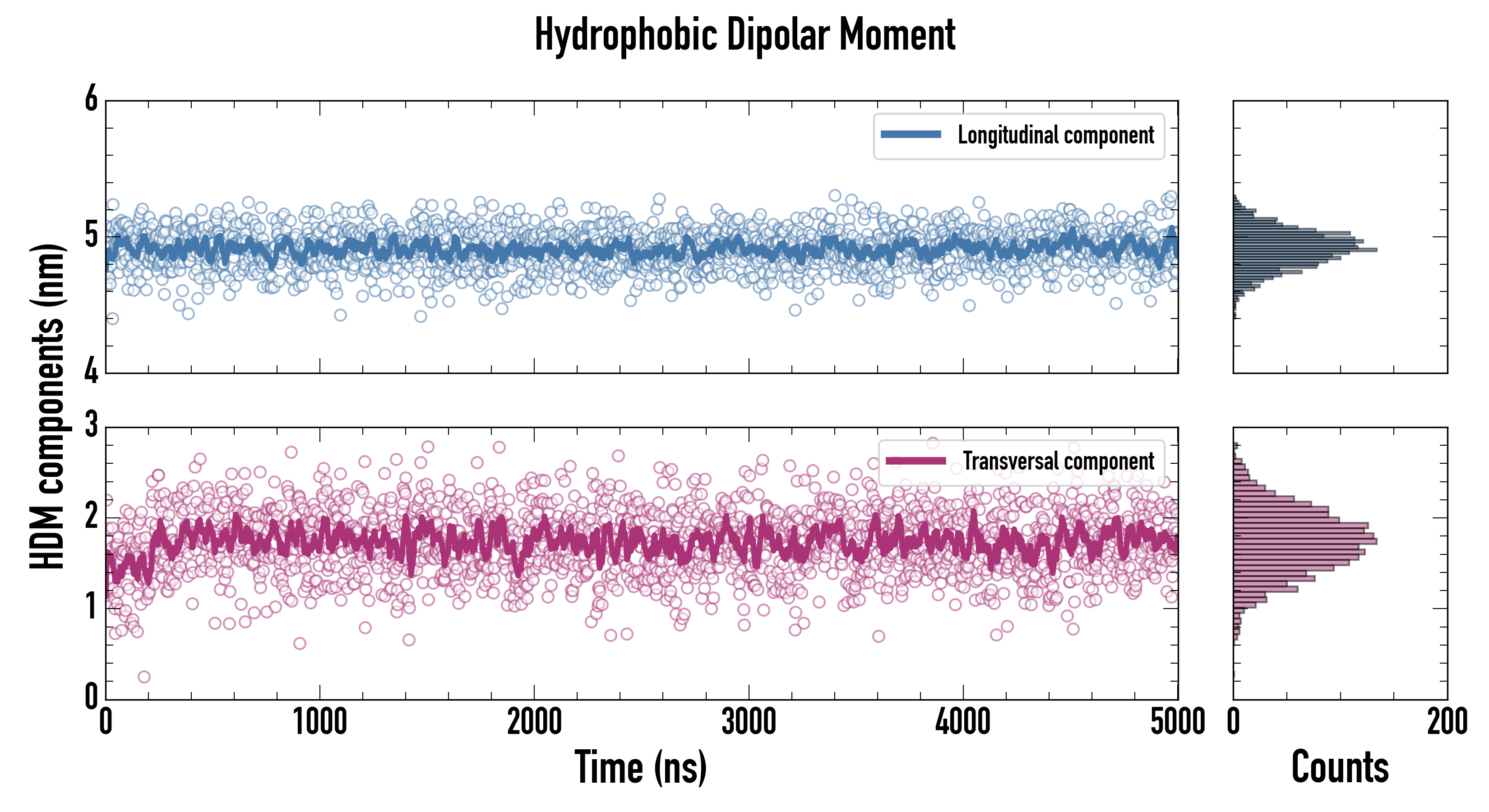 Longitudinal (e nm): 6.24 Transversal (e nm): 0.58 Hydrophobic Dipolar Moment (nm): 5.21