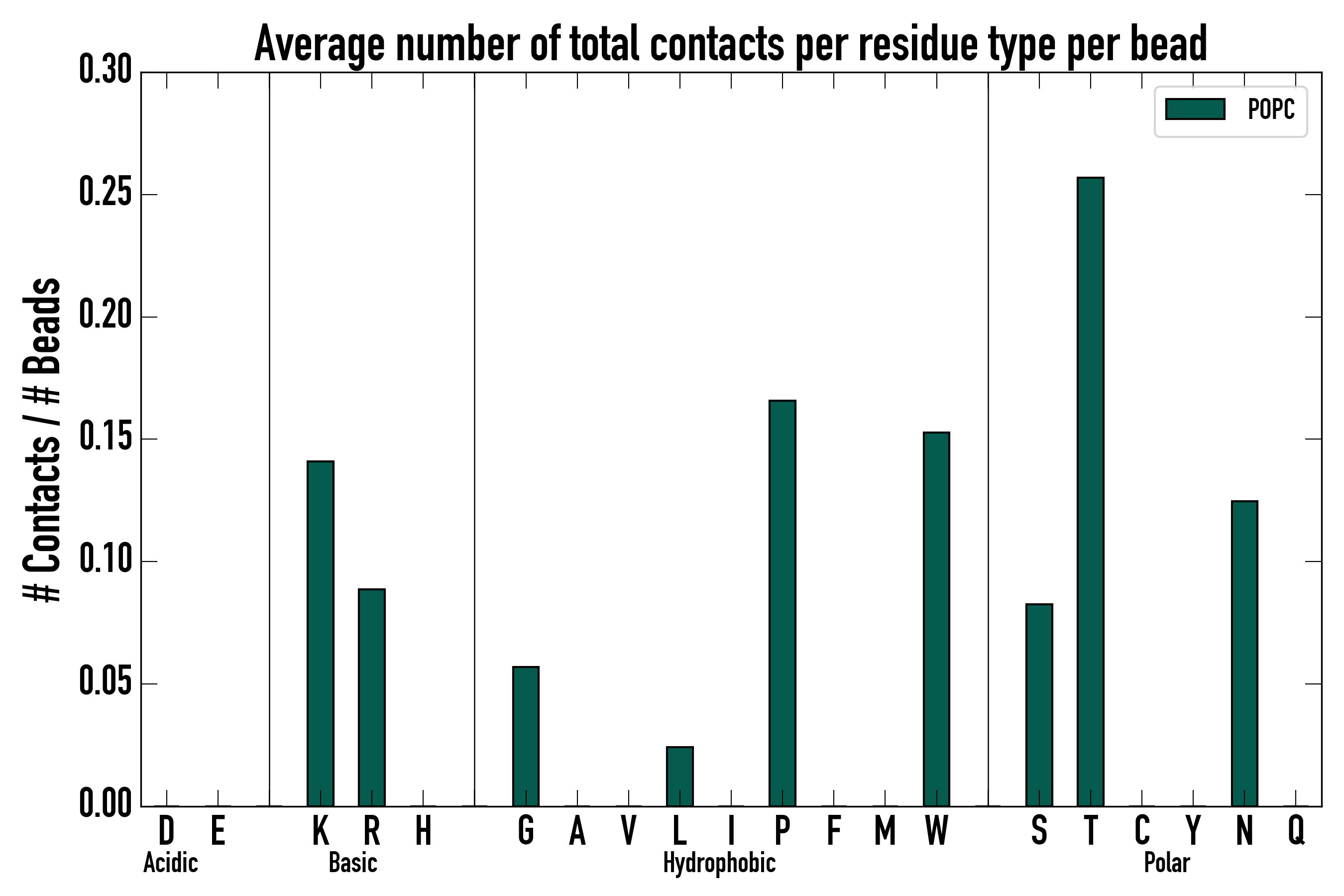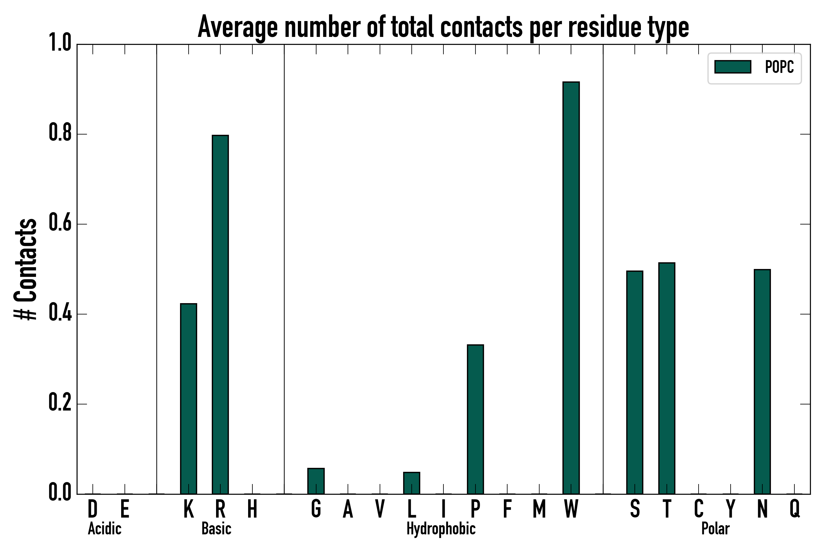 Number of total contacts per residue type: