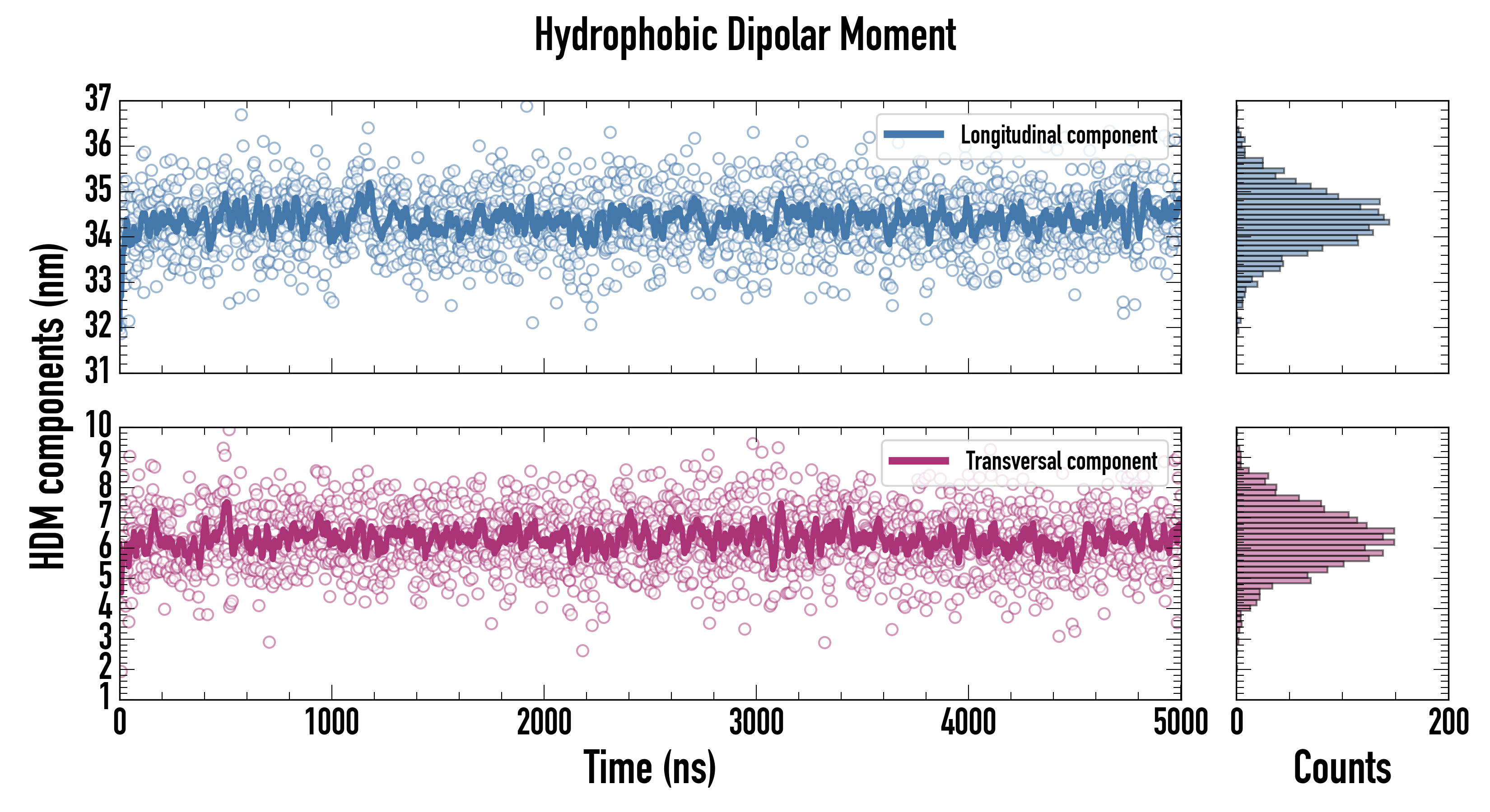 Longitudinal (e nm): 13.5 Transversal (e nm): 2.32 Hydrophobic Dipolar Moment (nm): 35.6