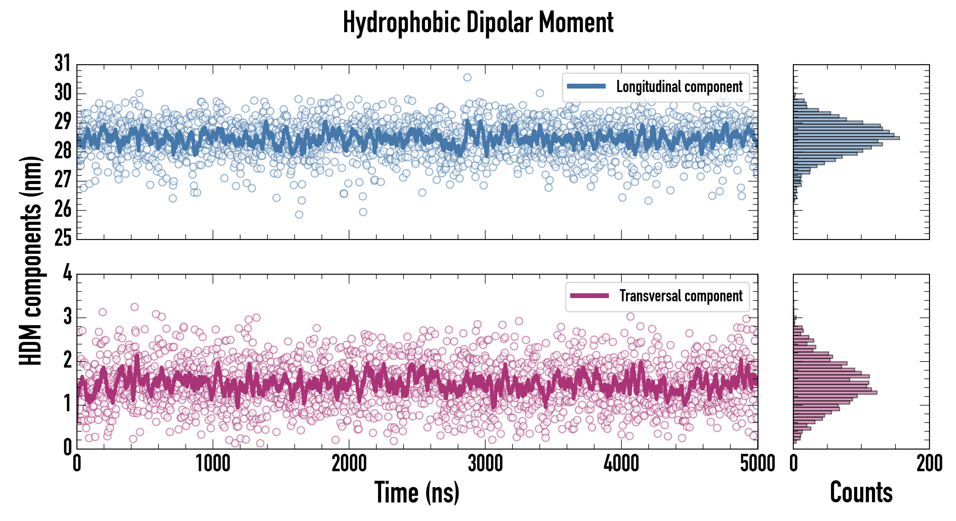 Longitudinal (e nm): 6.46 Transversal (e nm): 0.62 Hydrophobic Dipolar Moment (nm): 30.1