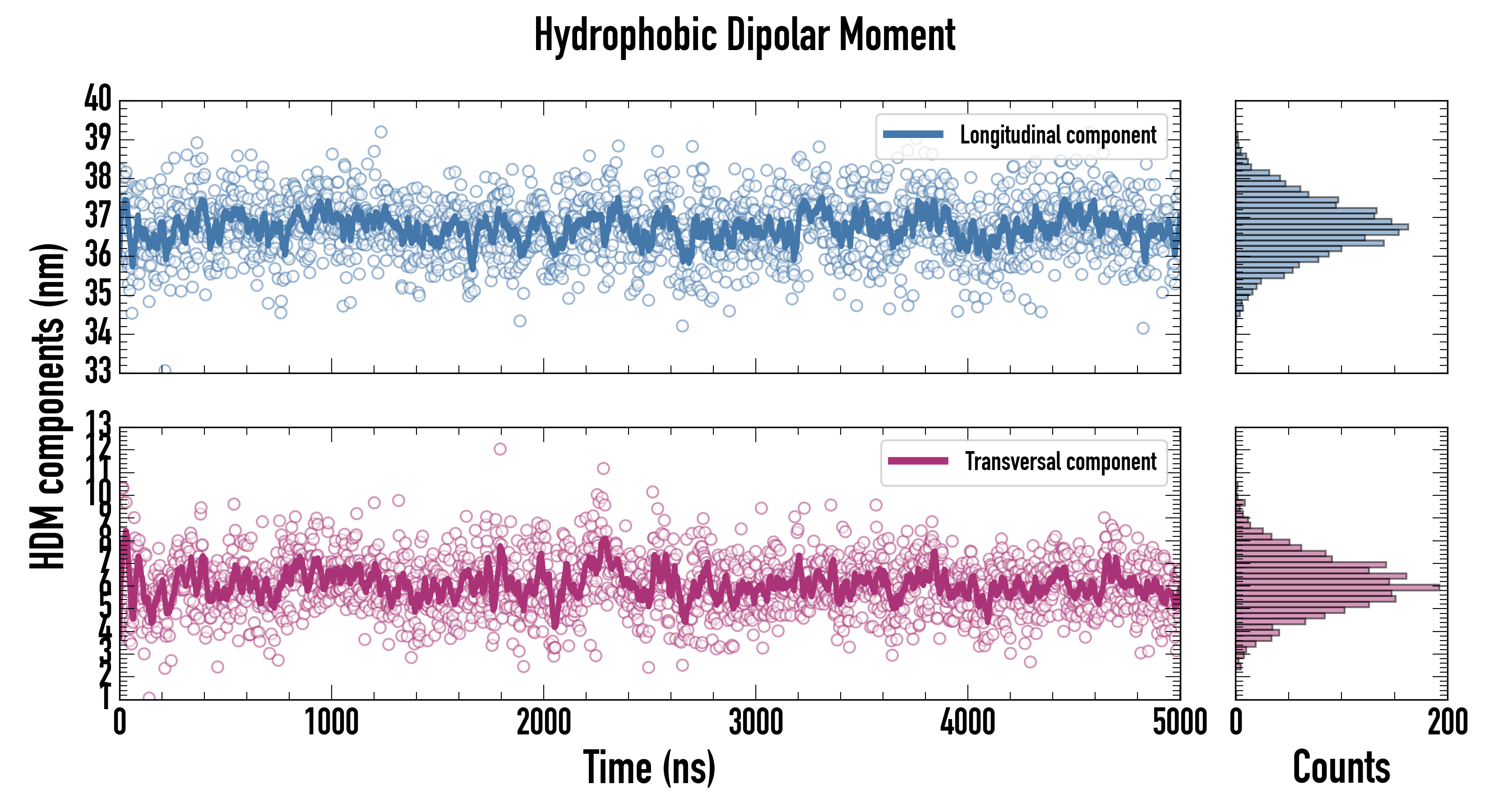Longitudinal (e nm): 12.9 Transversal (e nm): 2.22 Hydrophobic Dipolar Moment (nm): 38.2