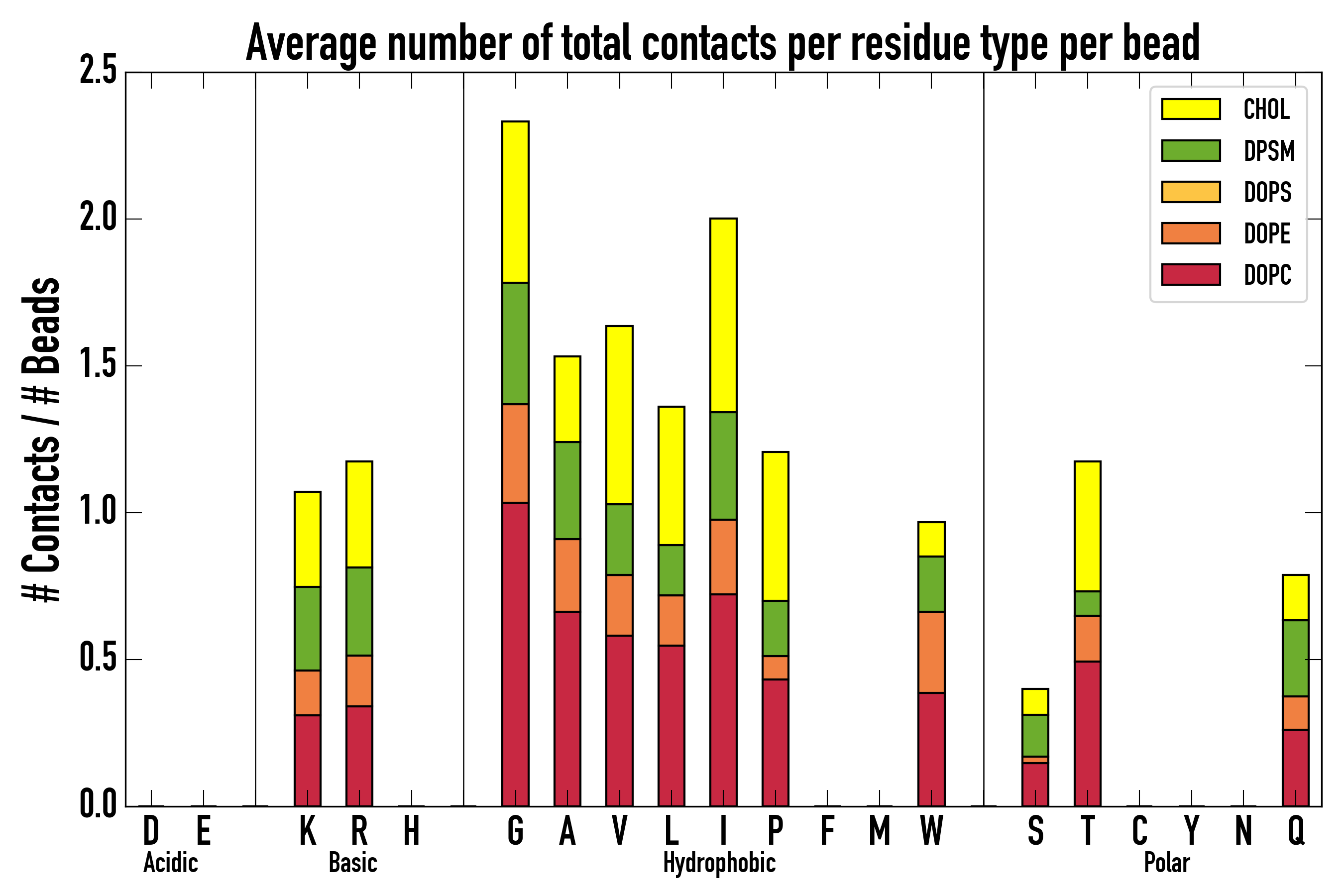Number of total contacts per residue type: