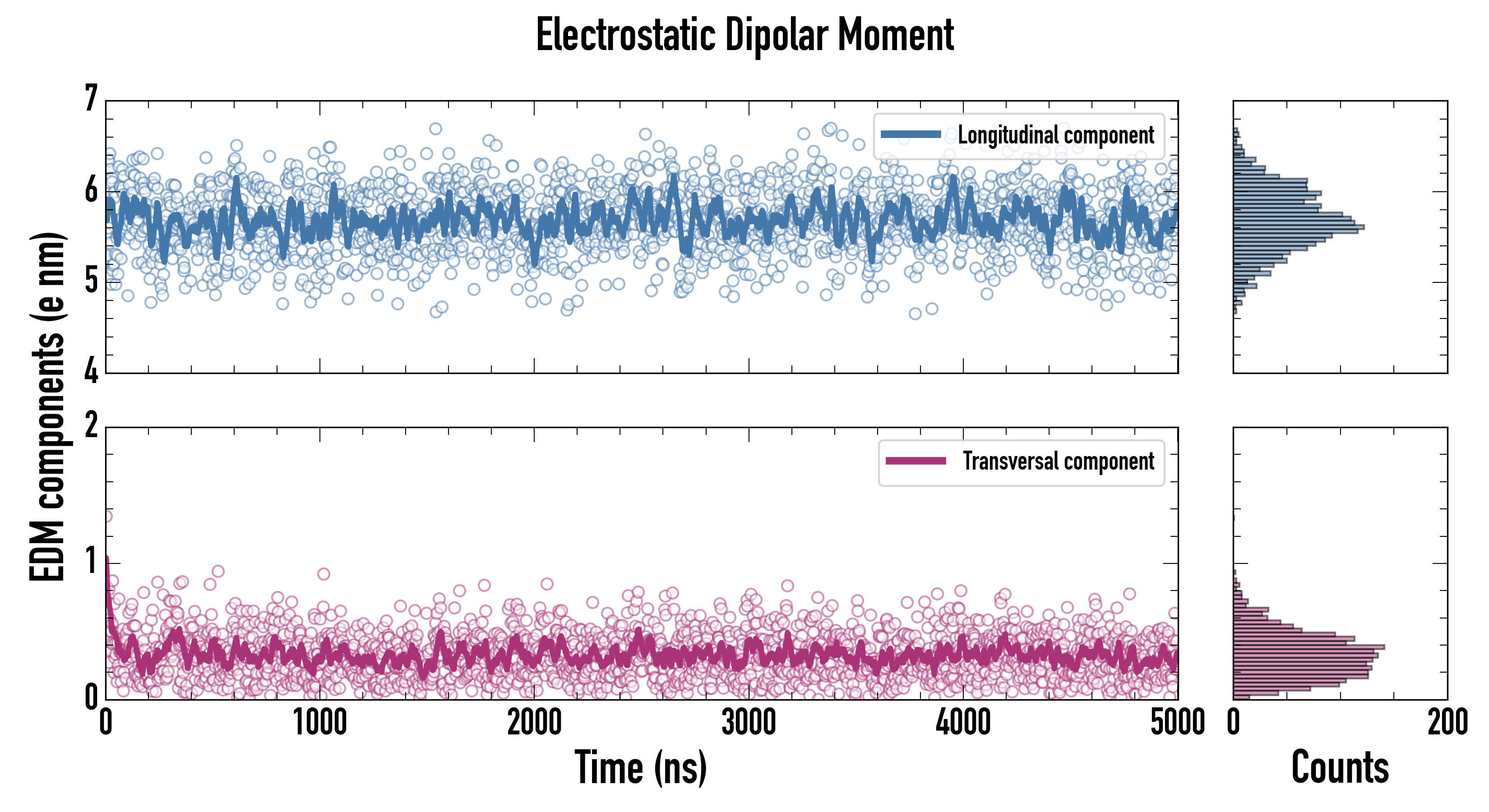Longitudinal (e nm): 6.46 Transversal (e nm): 0.62 Hydrophobic Dipolar Moment (nm): 30.1