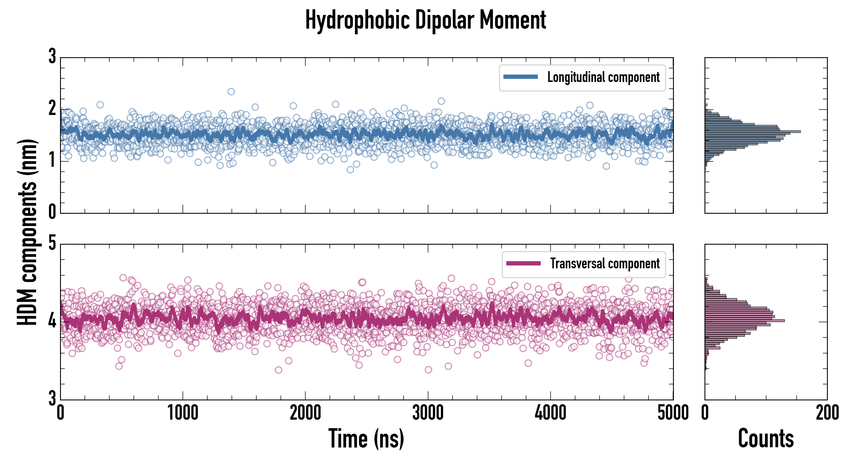 Longitudinal (e nm): 2.82 Transversal (e nm): 1.48 Hydrophobic Dipolar Moment (nm): 4.75