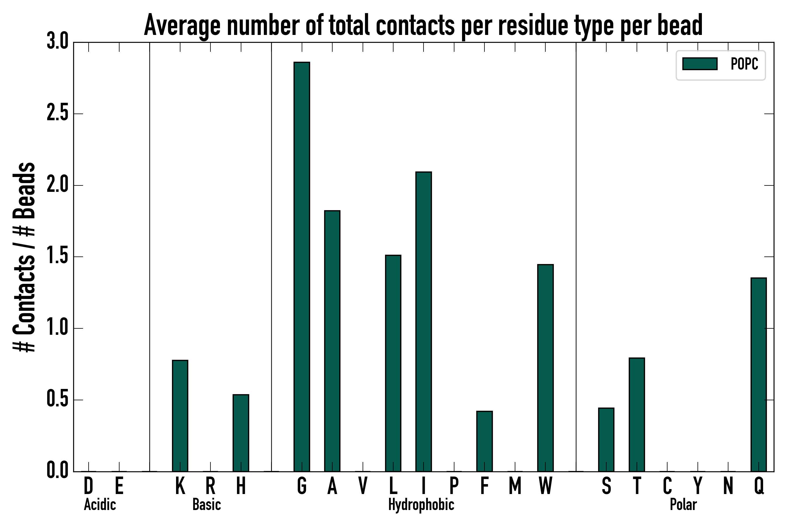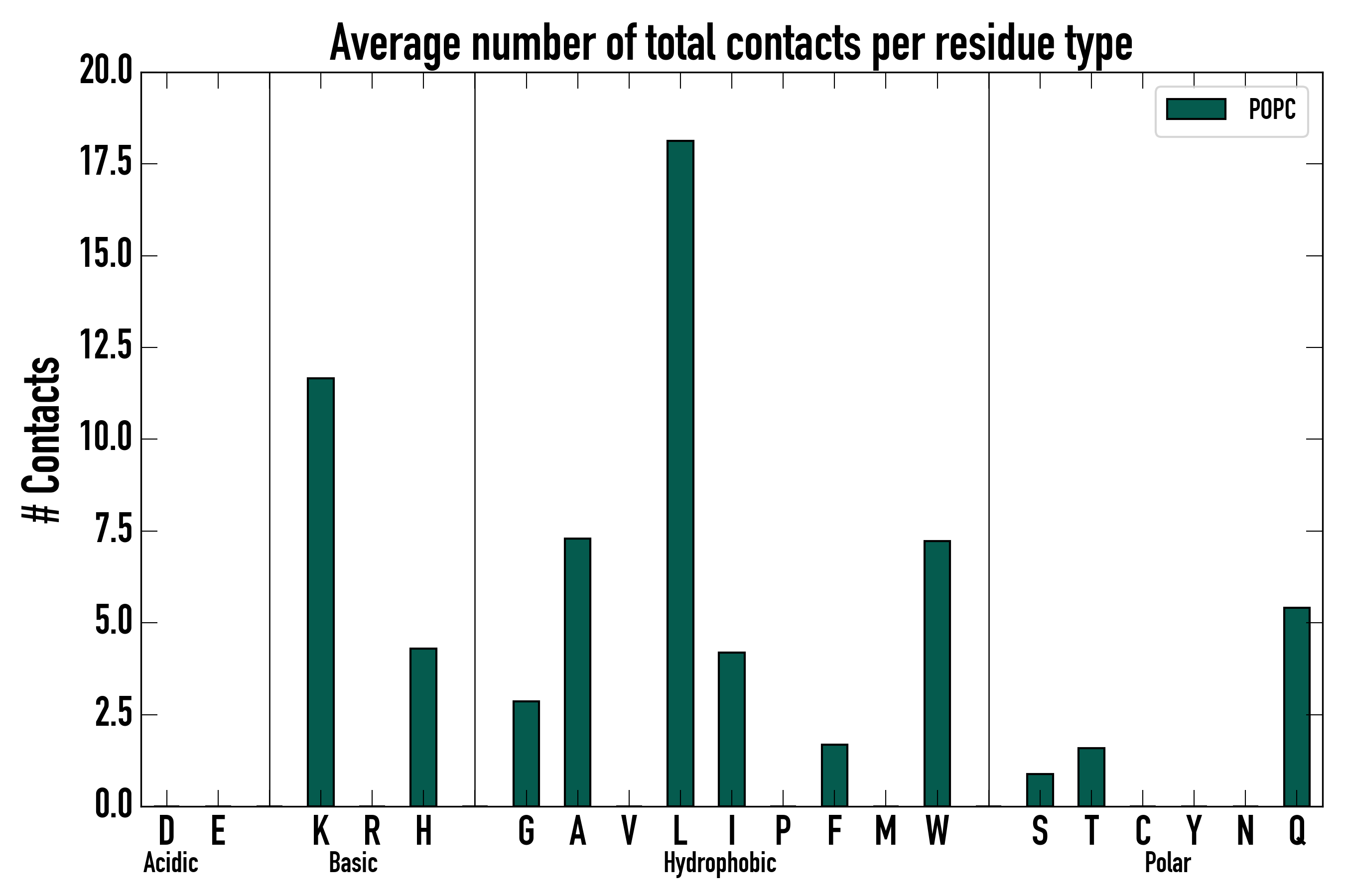 Number of total contacts per residue type: