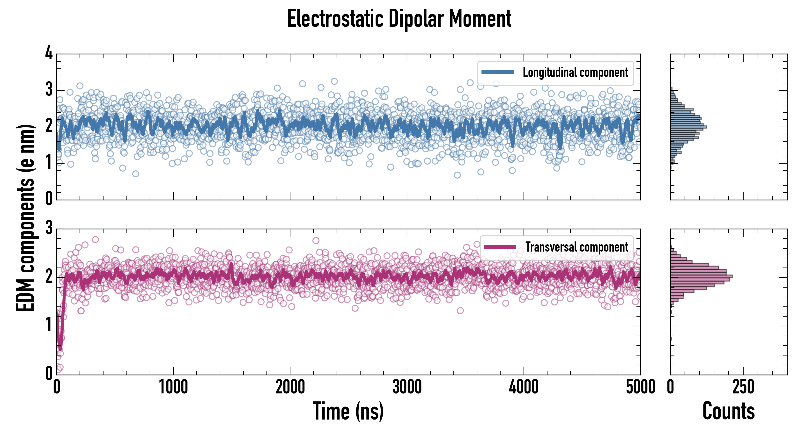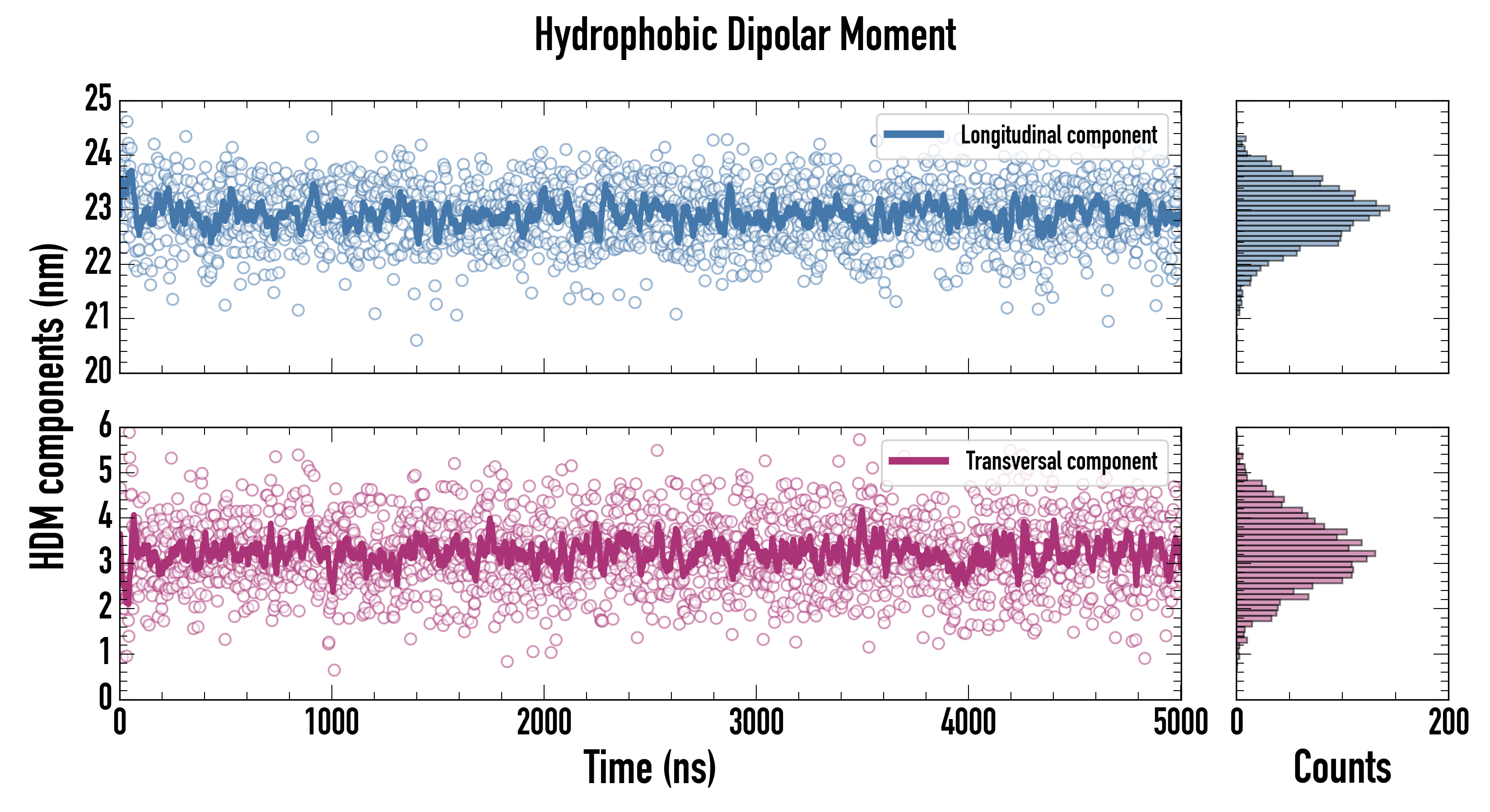 Longitudinal (e nm): 3.14 Transversal (e nm): 1.23 Hydrophobic Dipolar Moment (nm): 24.5