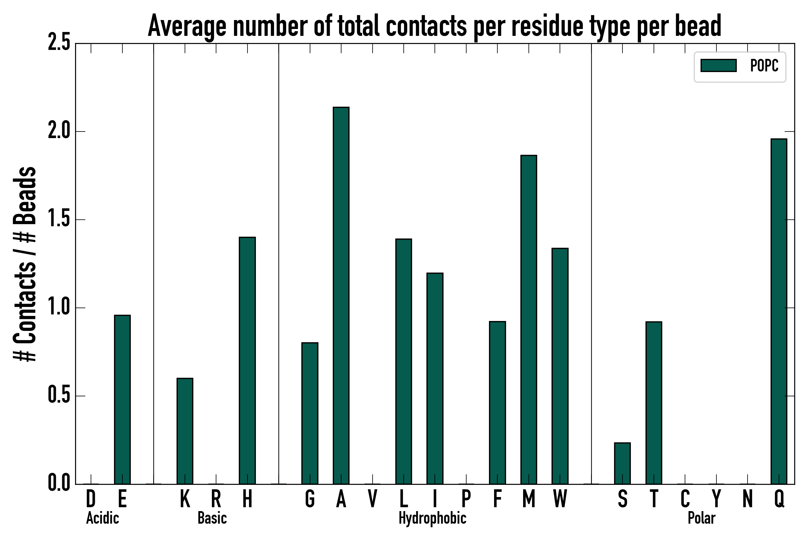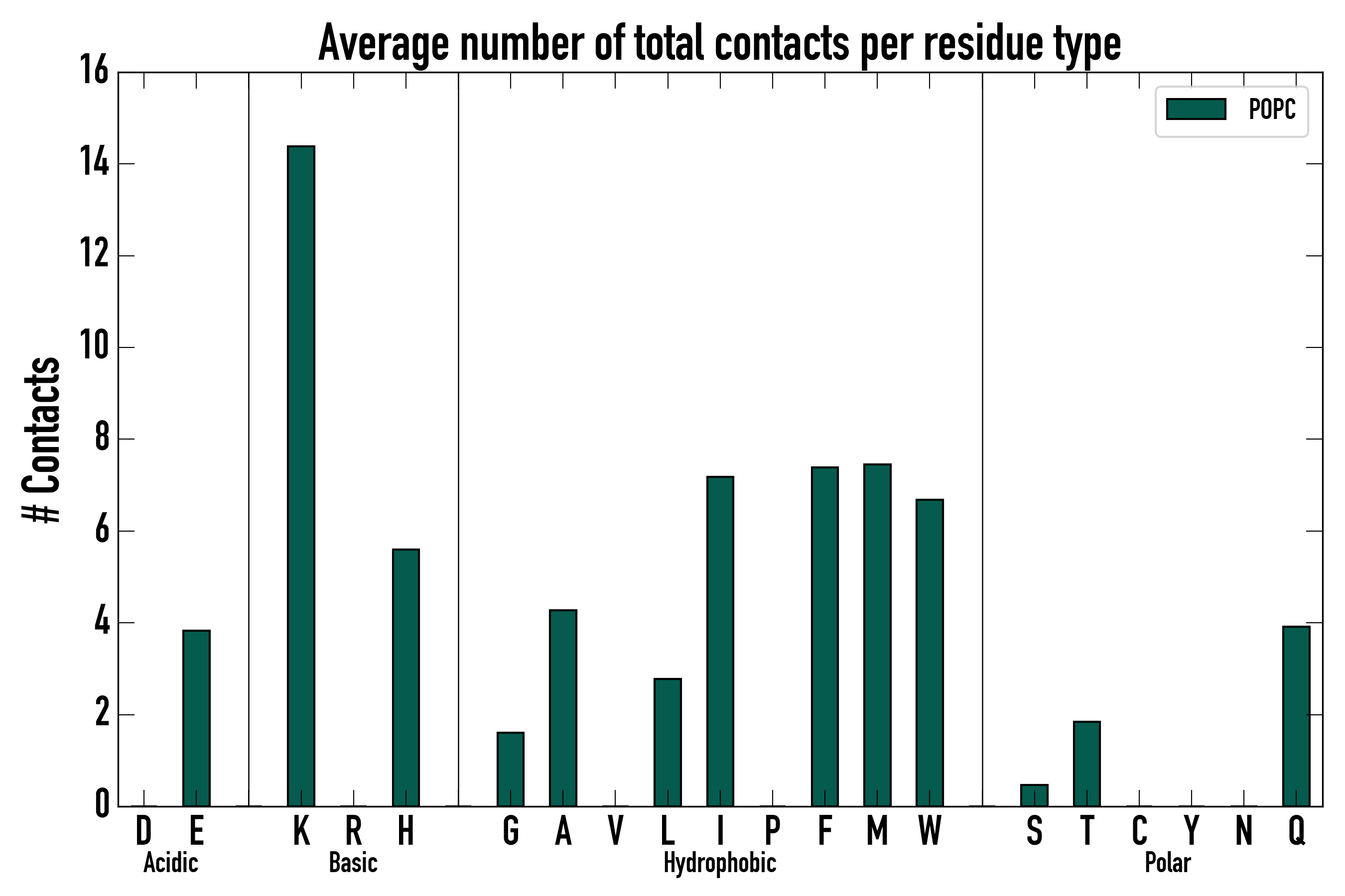 Number of total contacts per residue type: