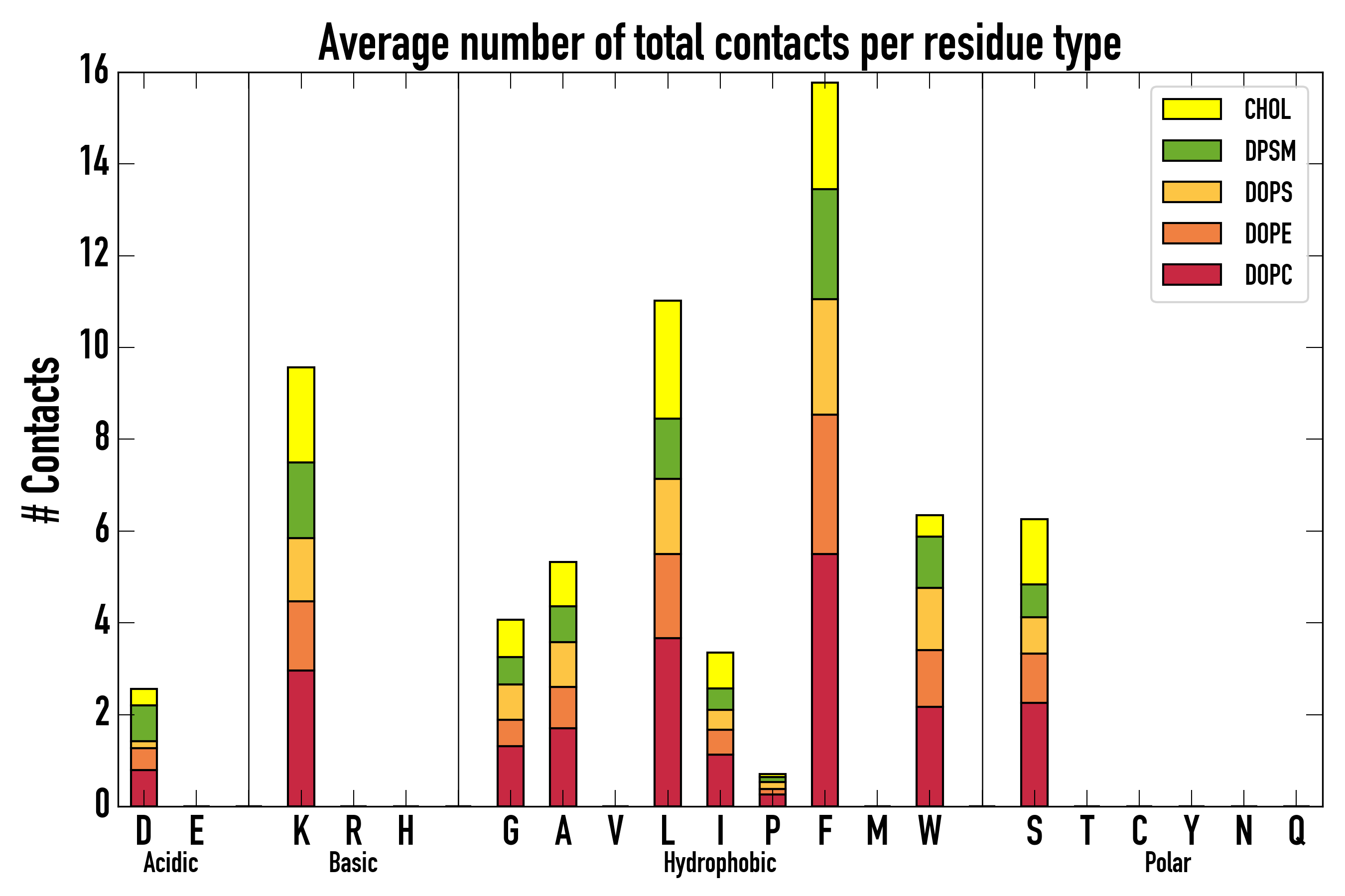 Number of total contacts per residue type: