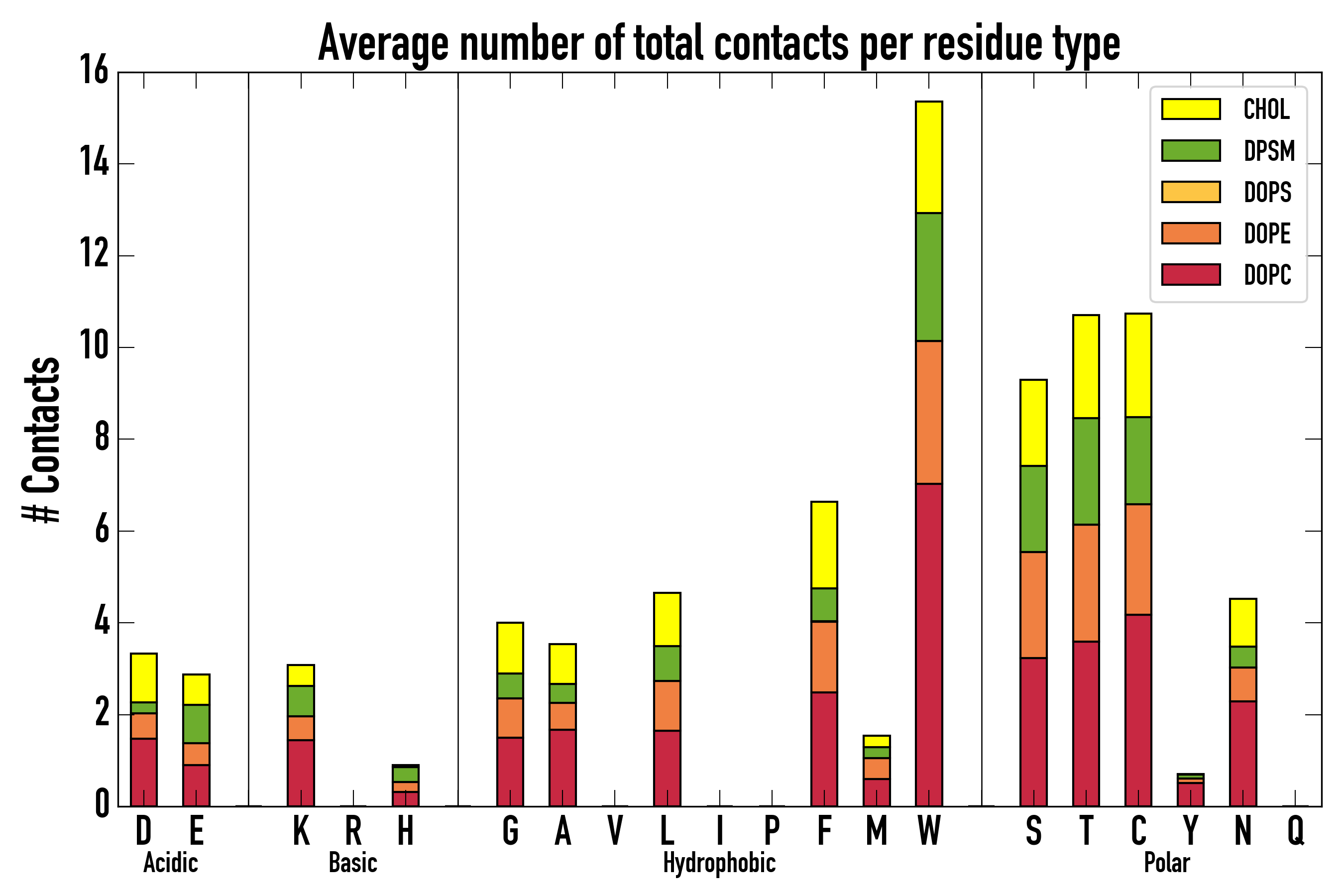 Number of total contacts per residue type:
