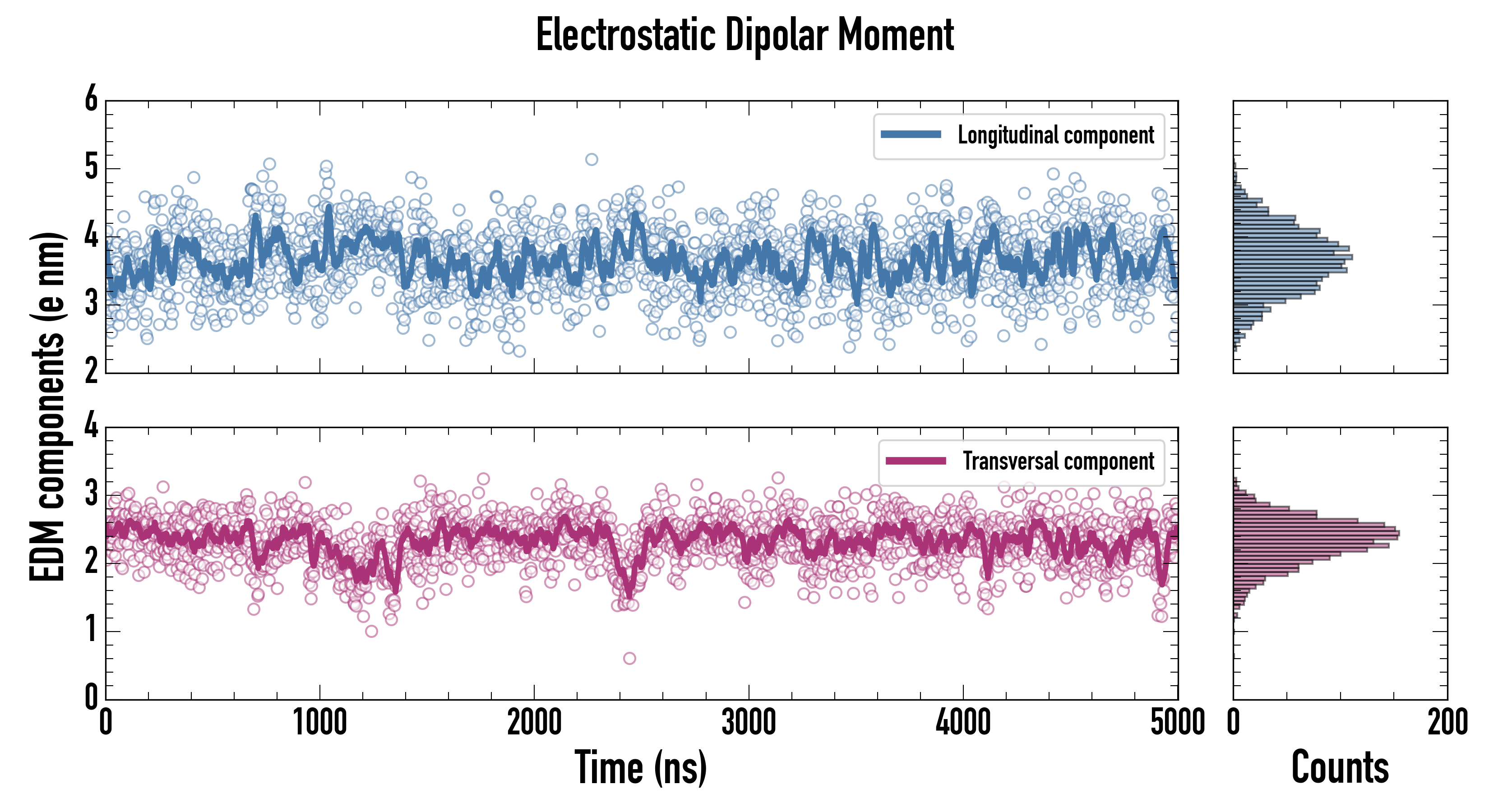 Longitudinal (e nm): 4.74 Transversal (e nm): 1.3 Hydrophobic Dipolar Moment (nm): 25.4