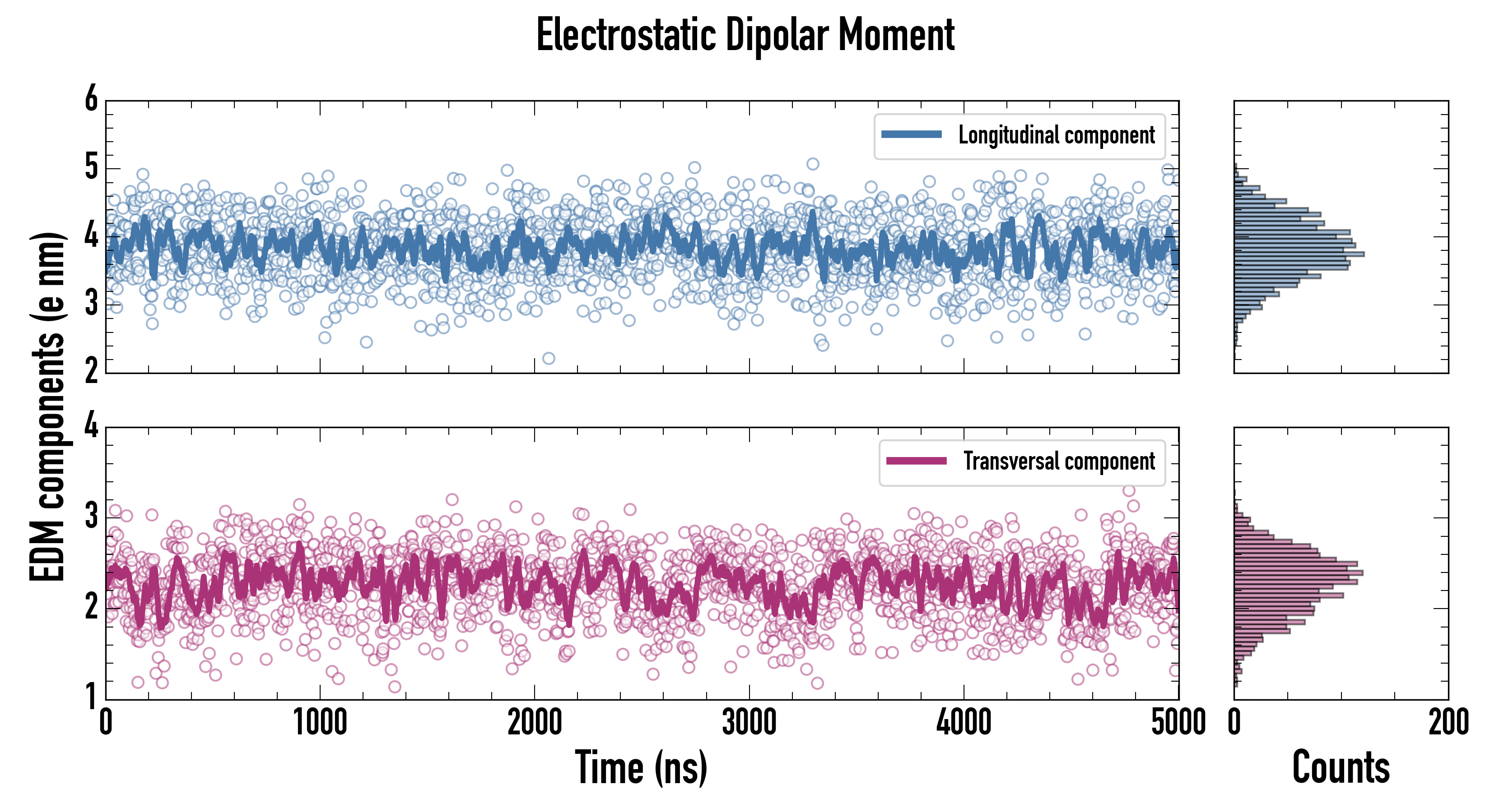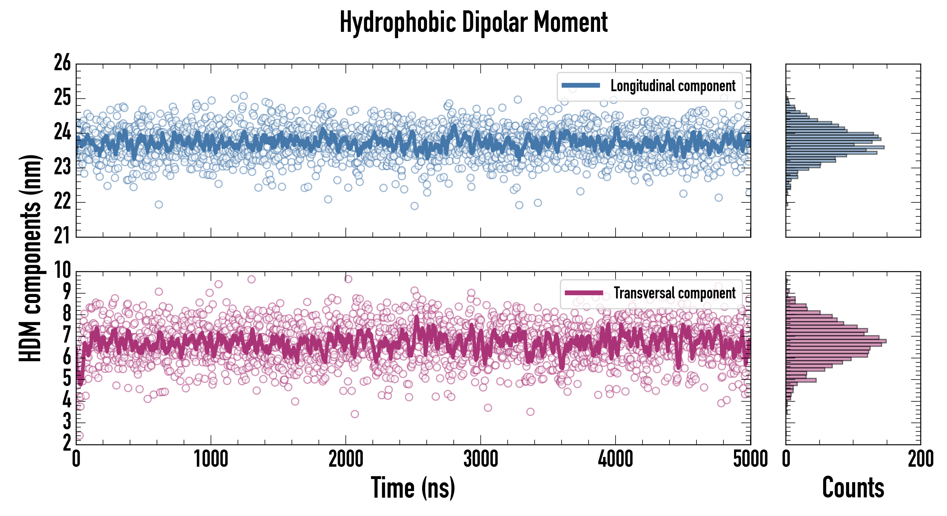 Longitudinal (e nm): 4.74 Transversal (e nm): 1.3 Hydrophobic Dipolar Moment (nm): 25.4