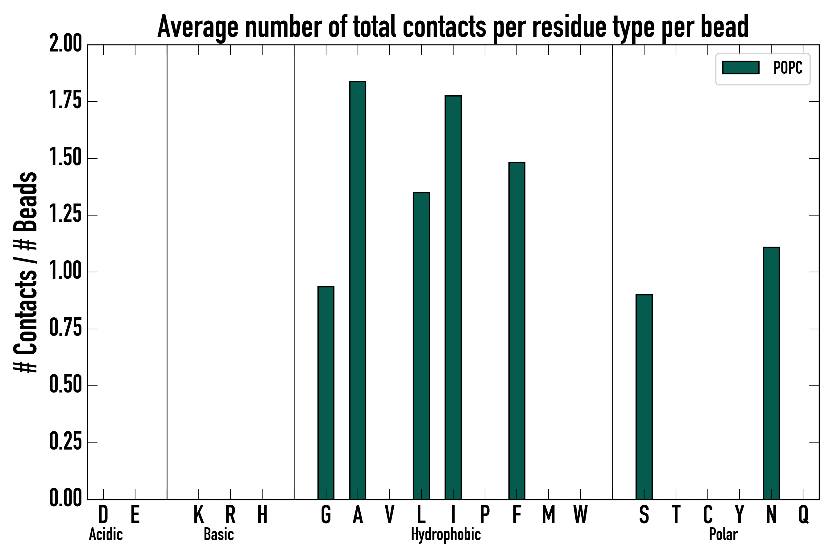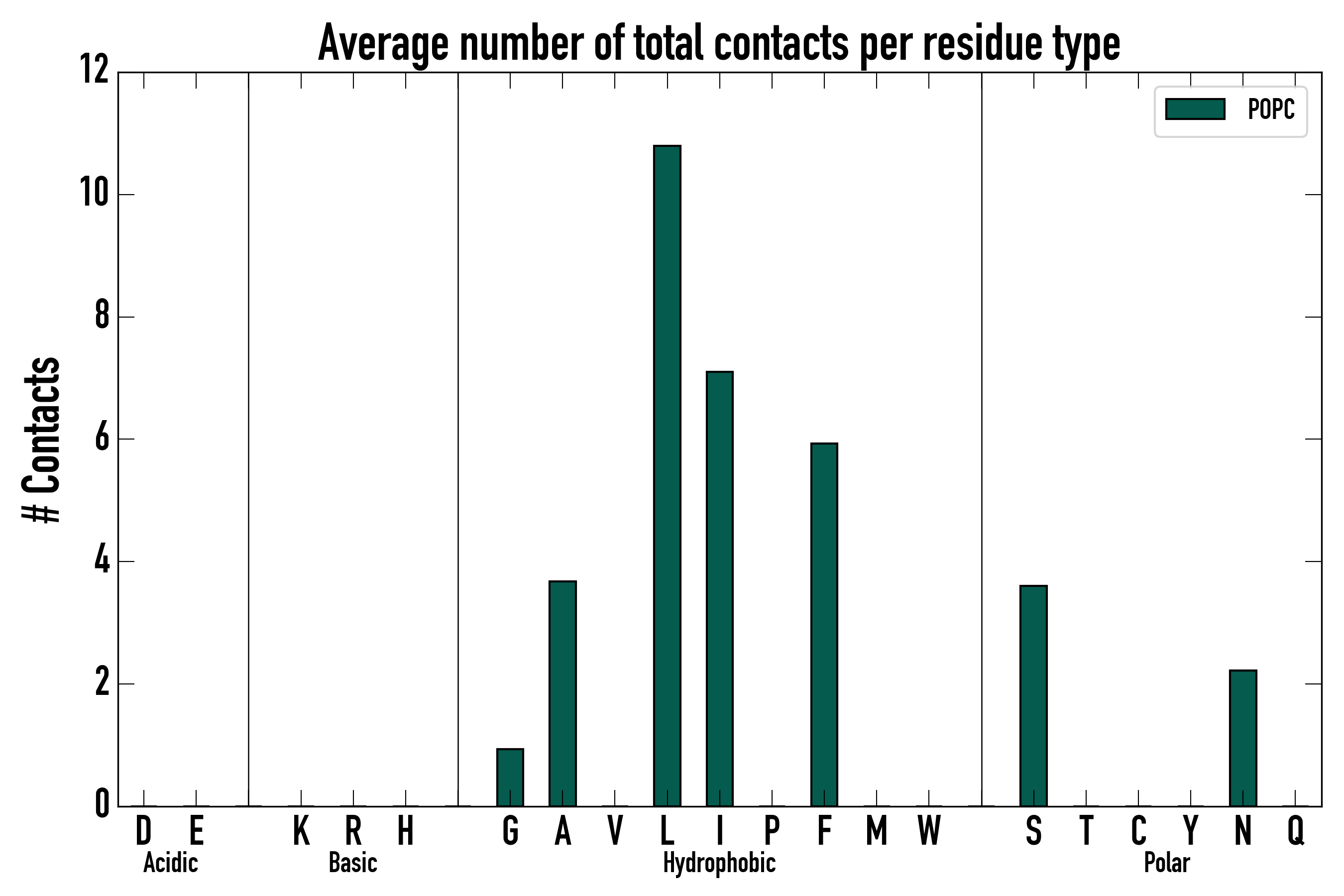 Number of total contacts per residue type: