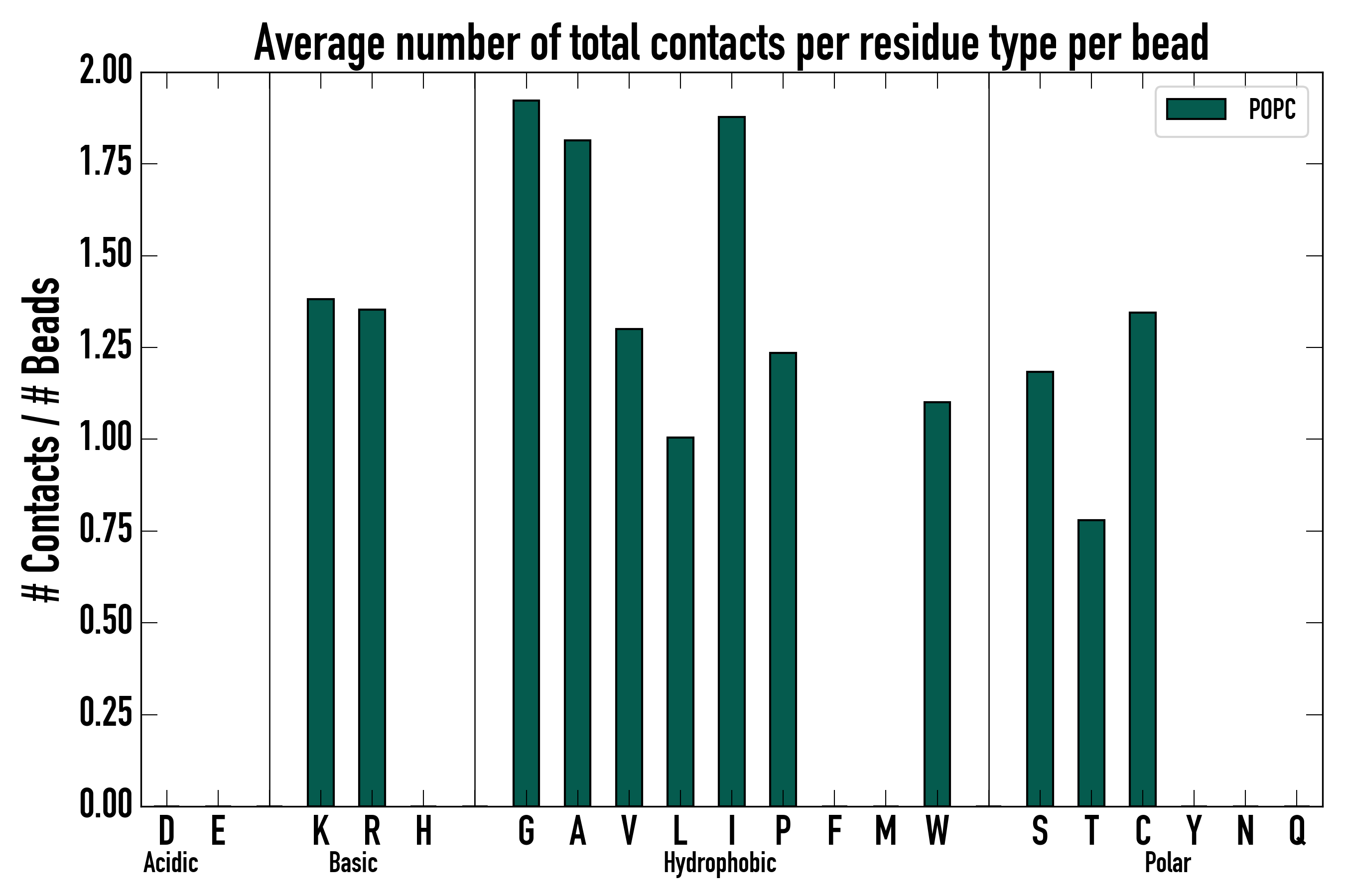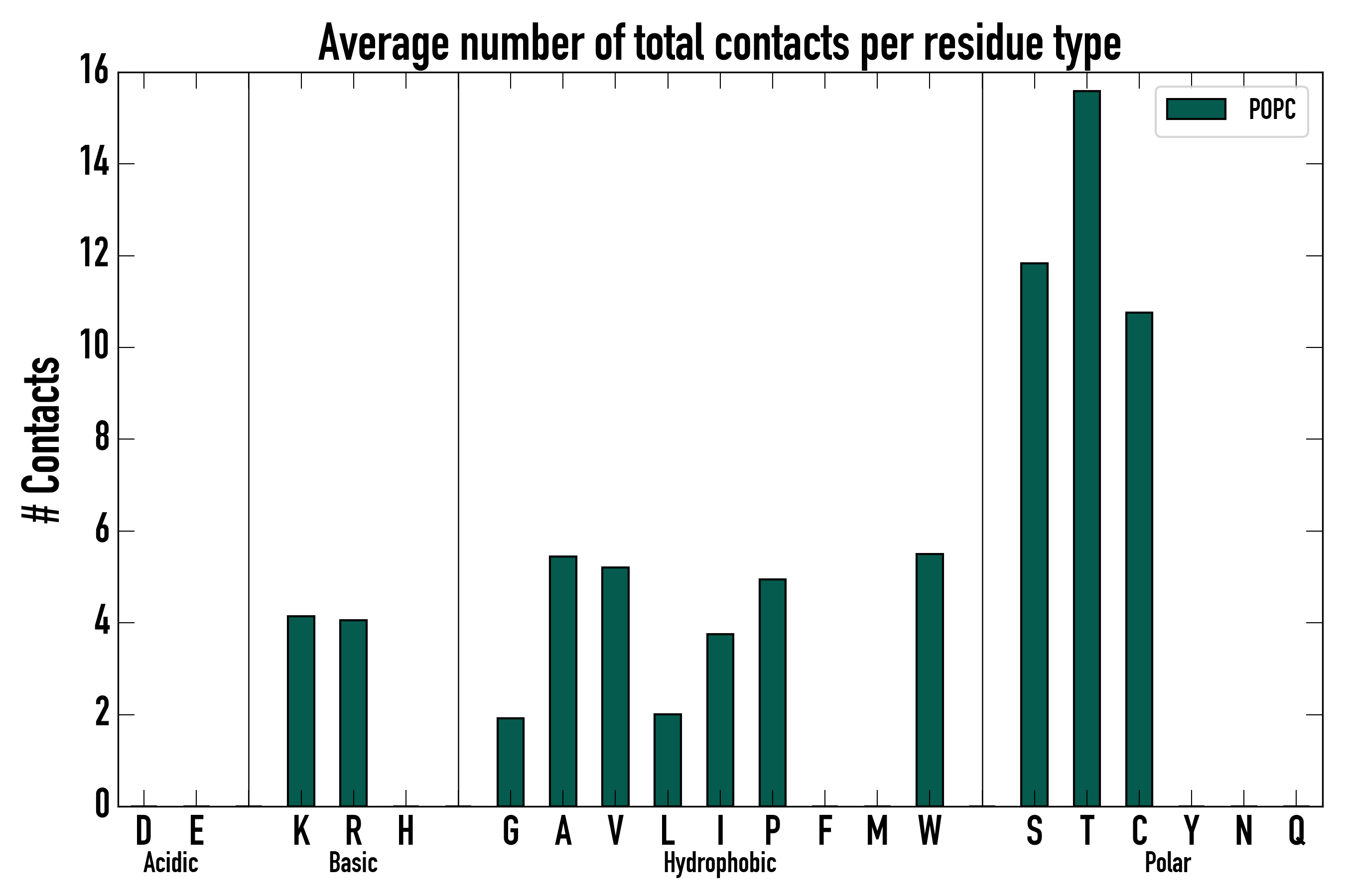 Number of total contacts per residue type: