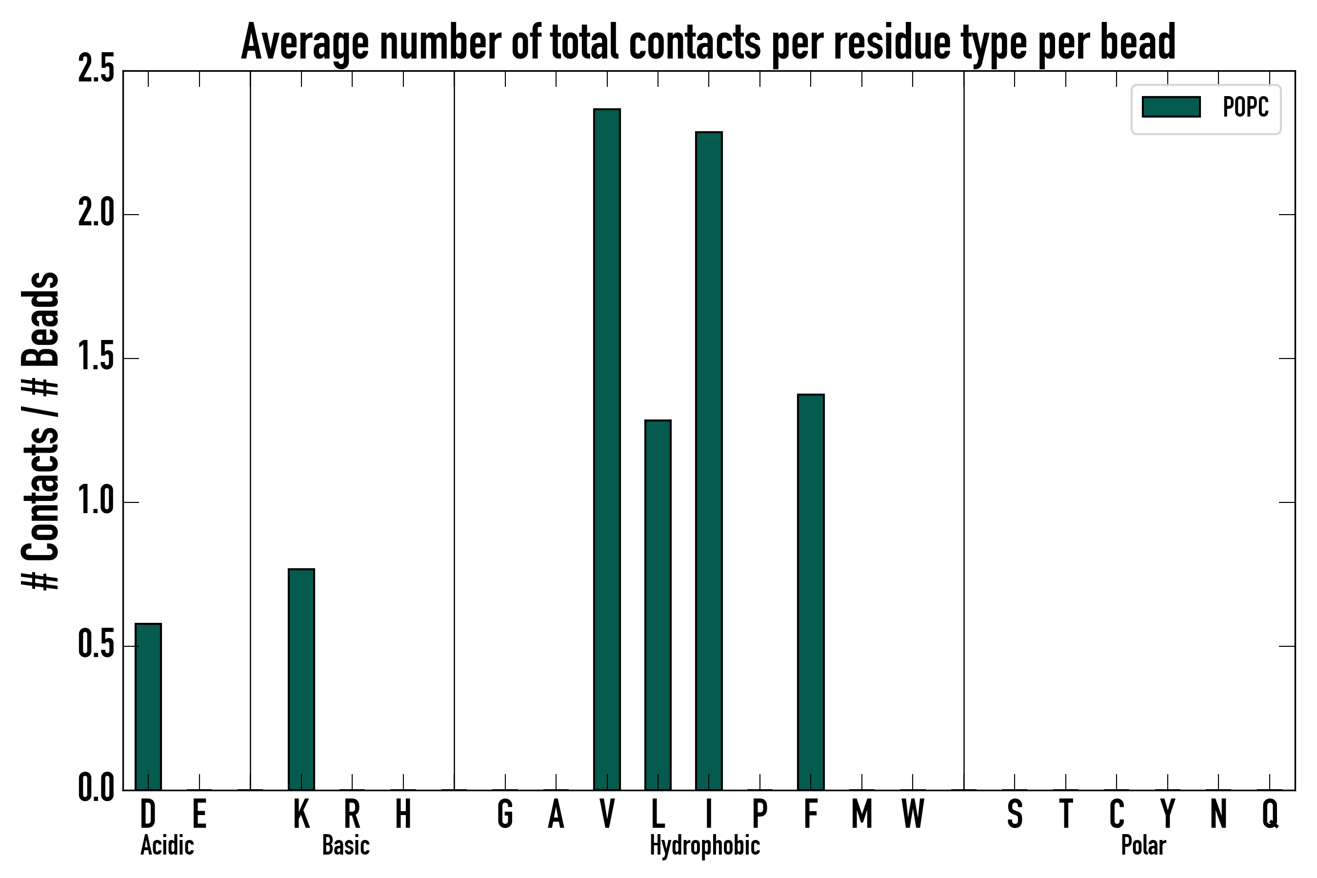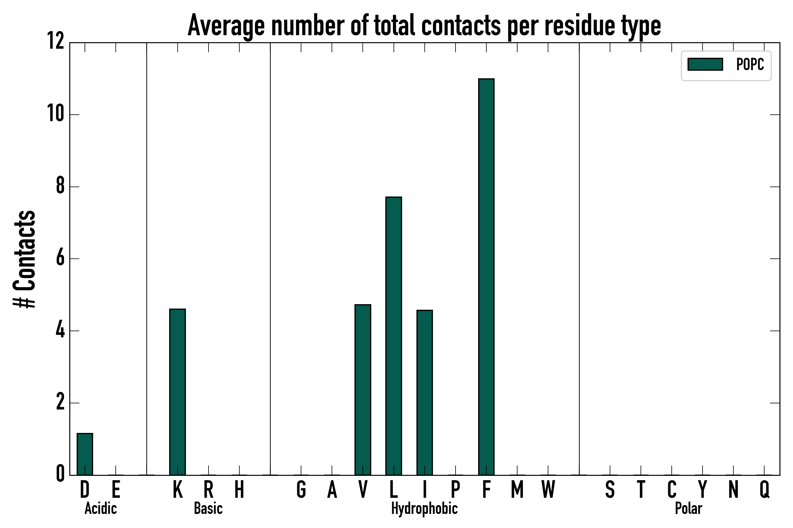 Number of total contacts per residue type: