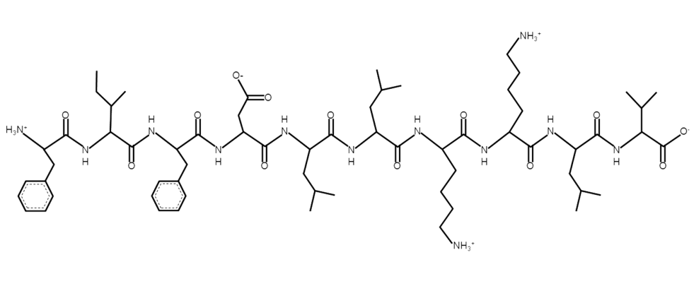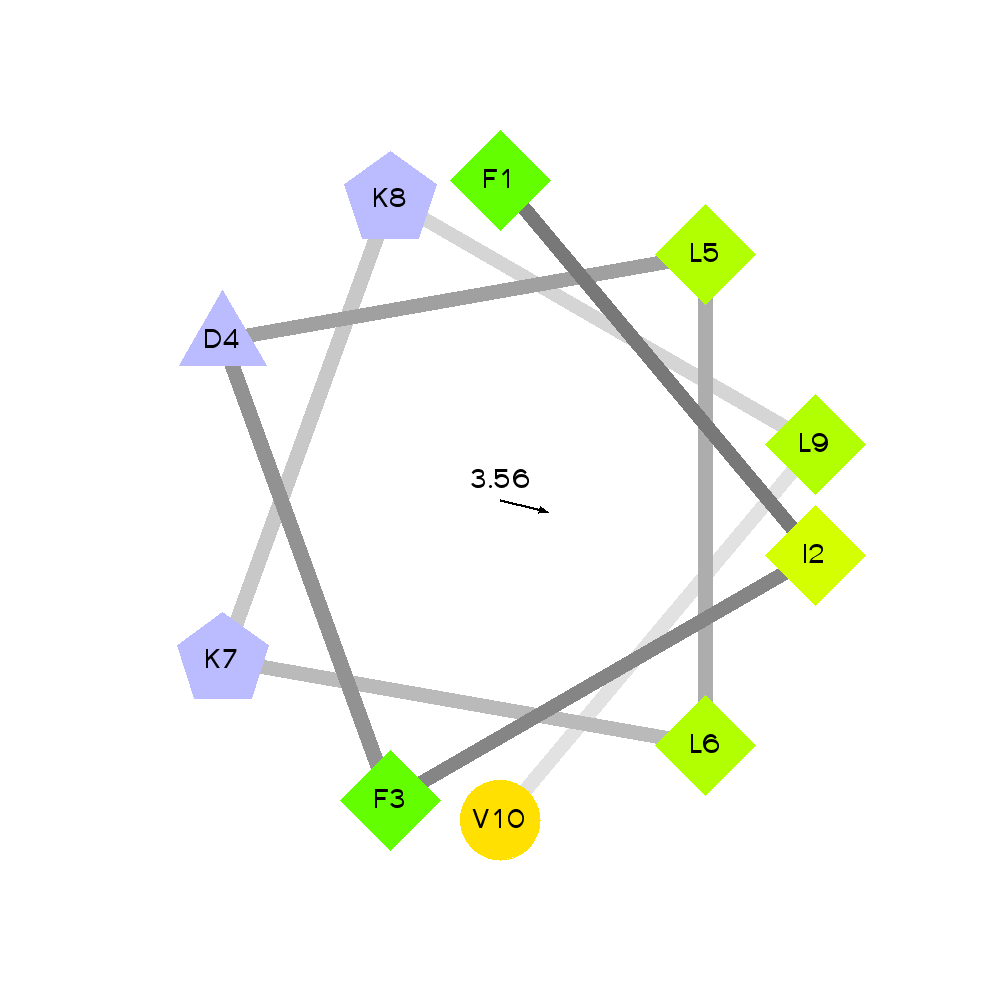 By amino acid: Basic: 2 Acidic: 1 Hydrophobic: 7 Polar: 0 Electrostatic Dipolar Moment (e nm): 1.13