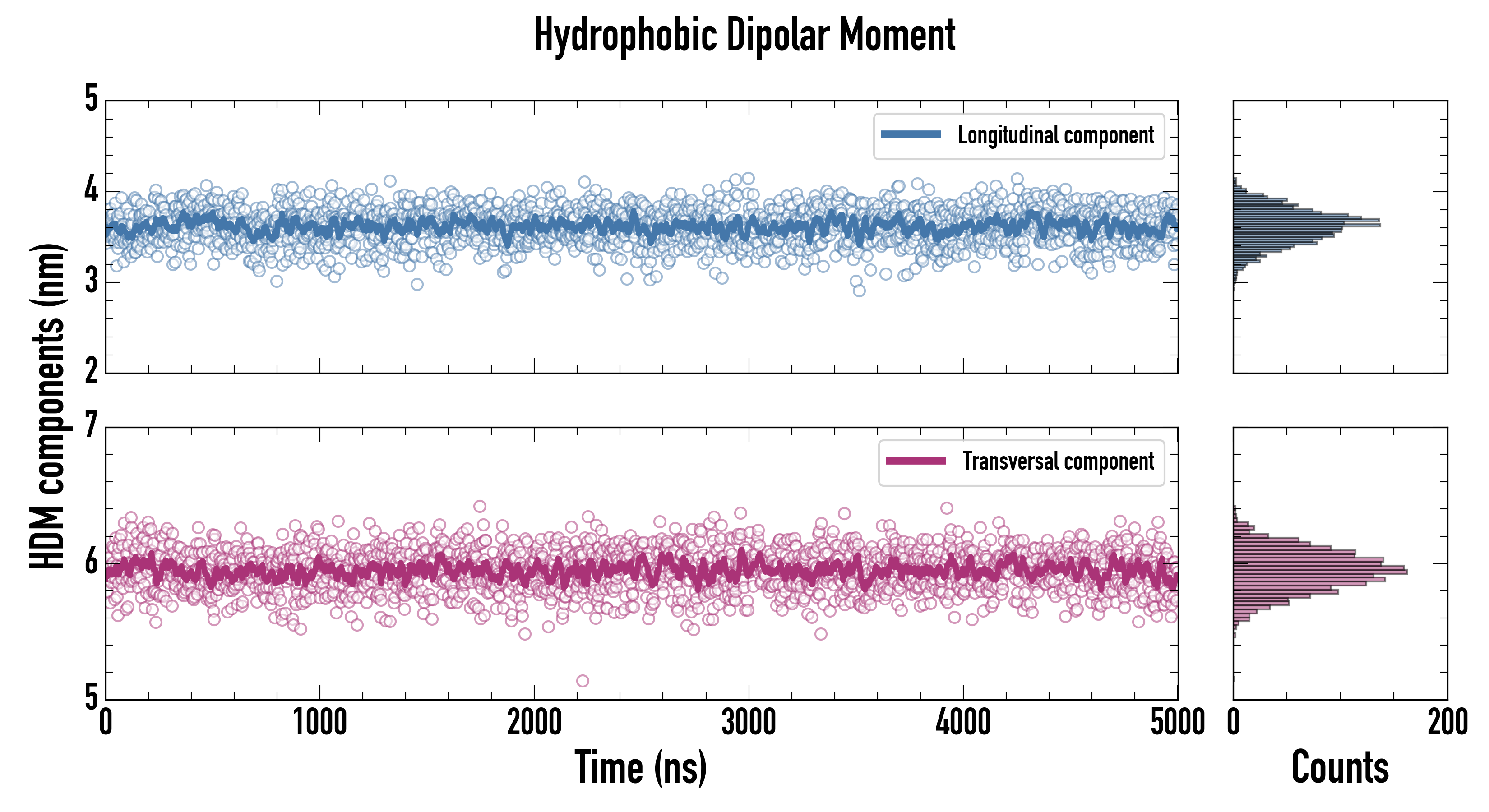 Longitudinal (e nm): 3.17 Transversal (e nm): 1.15 Hydrophobic Dipolar Moment (nm): 6.61