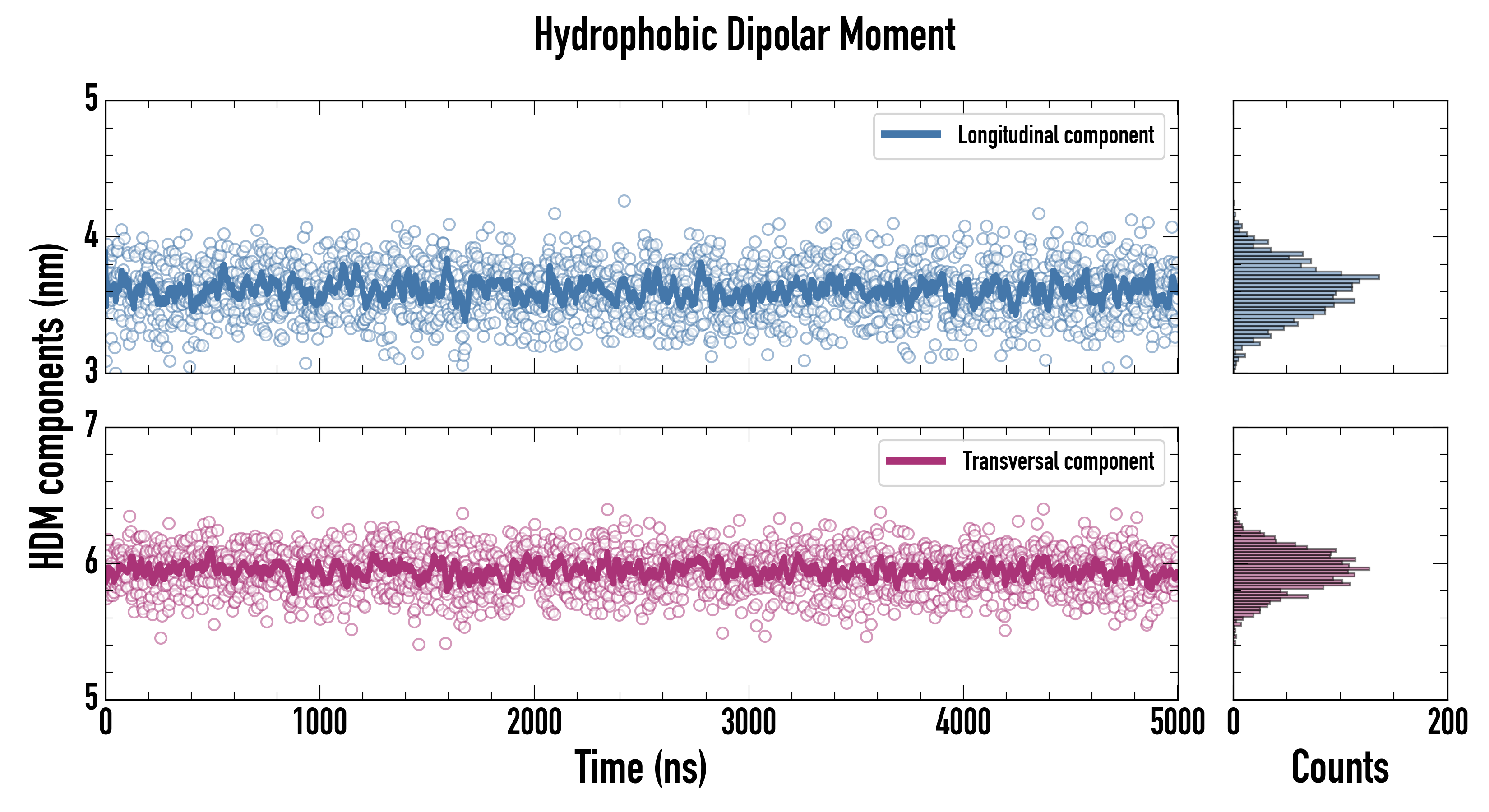 Longitudinal (e nm): 3.17 Transversal (e nm): 1.15 Hydrophobic Dipolar Moment (nm): 6.61
