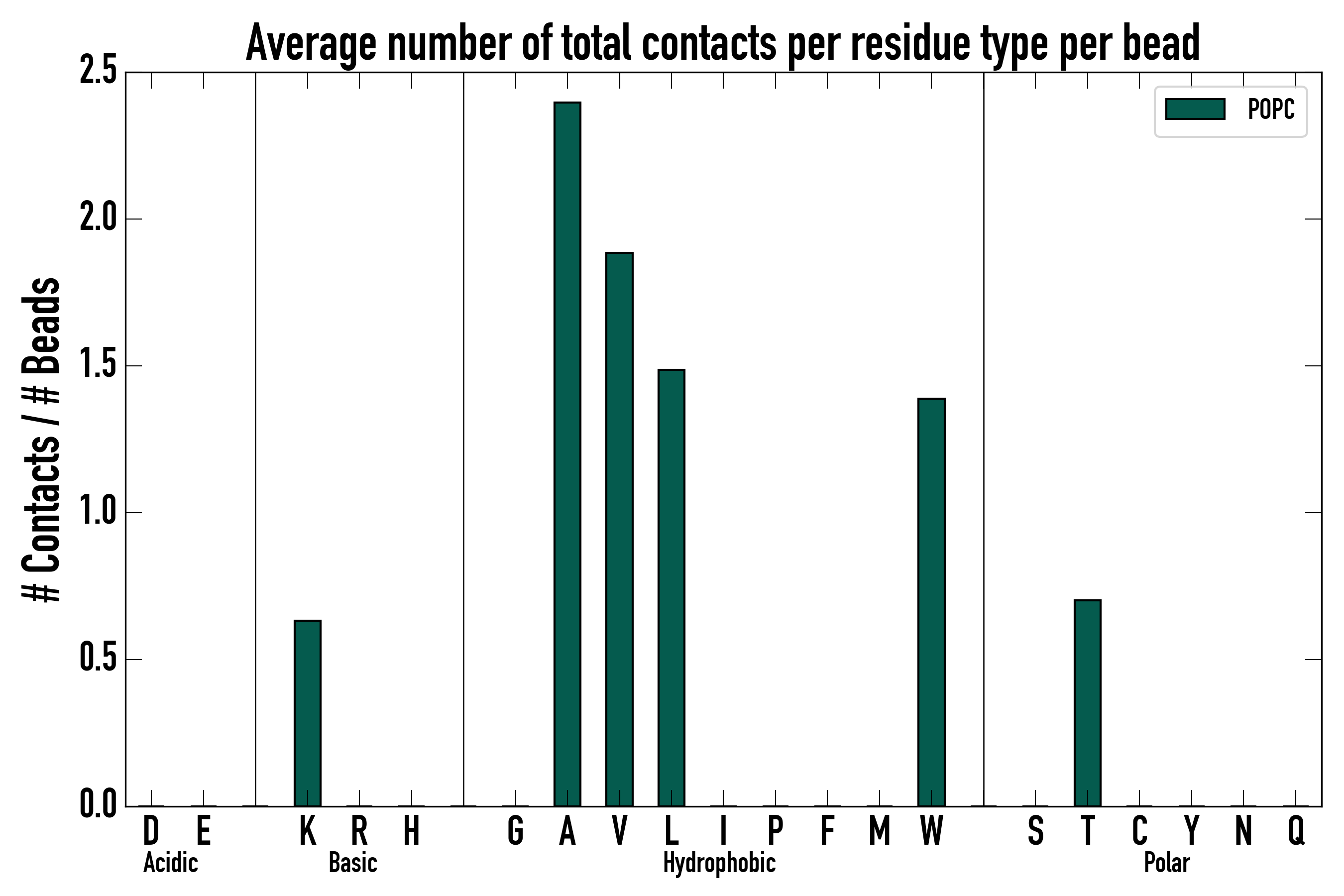 Number of total contacts per residue type: