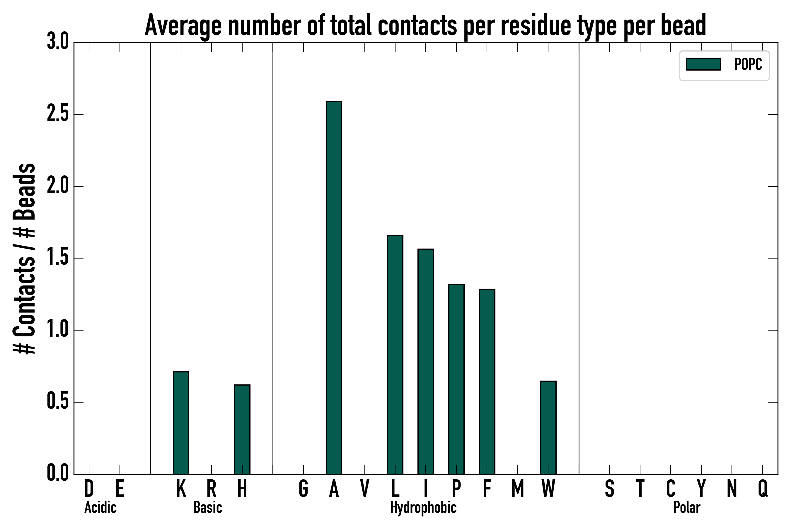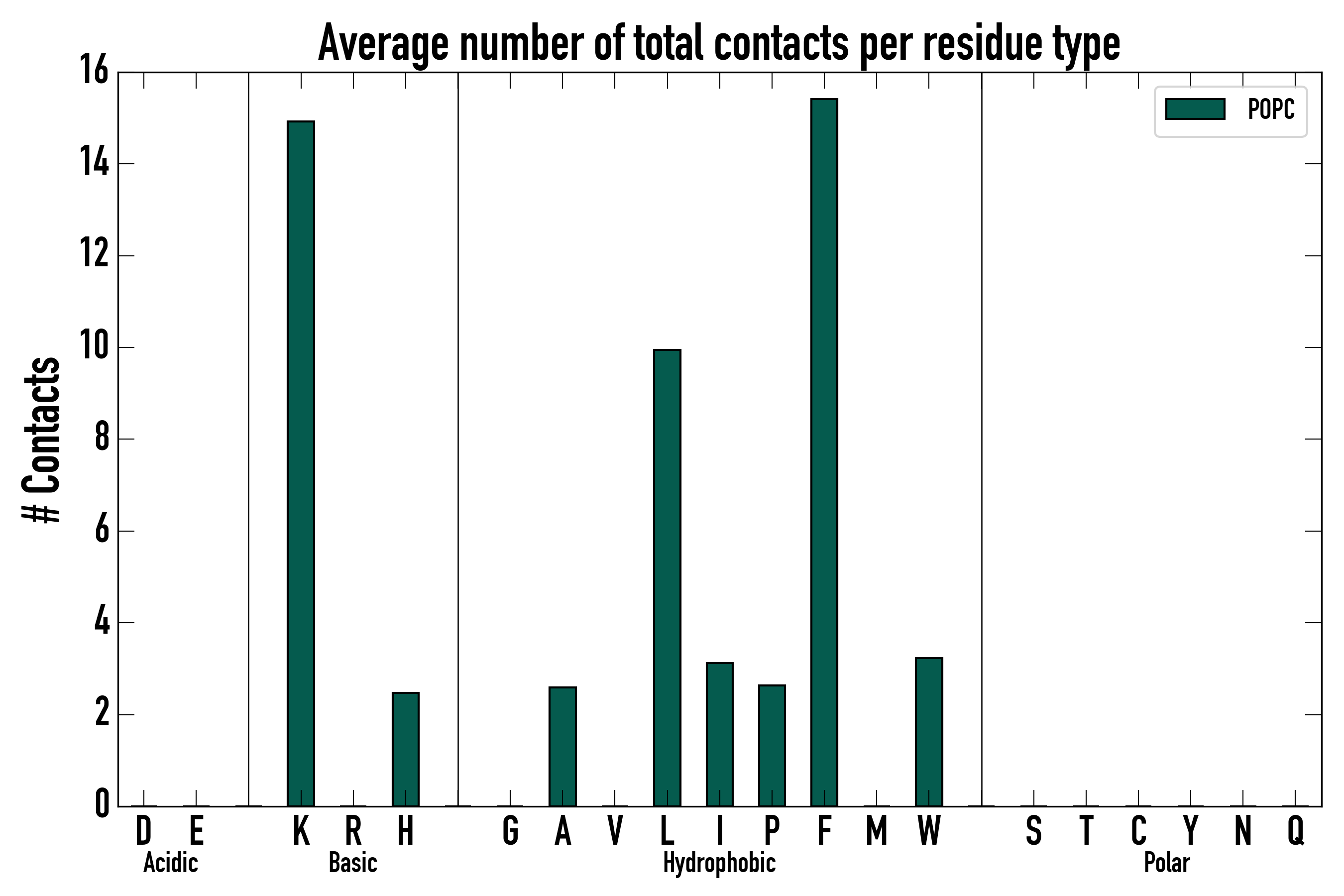 Number of total contacts per residue type: