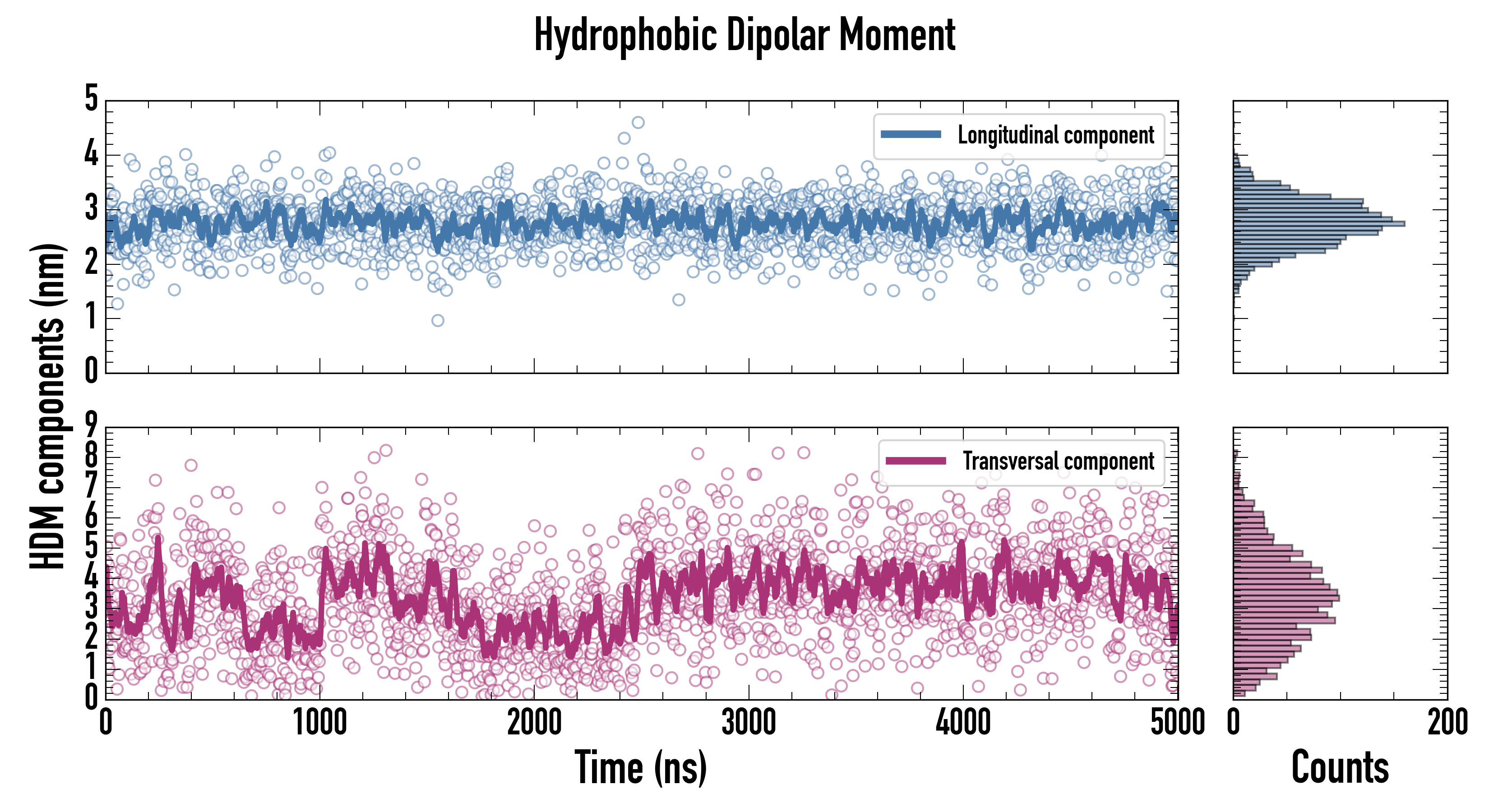 Longitudinal (e nm): 1.75 Transversal (e nm): 1.13 Hydrophobic Dipolar Moment (nm): 4.38