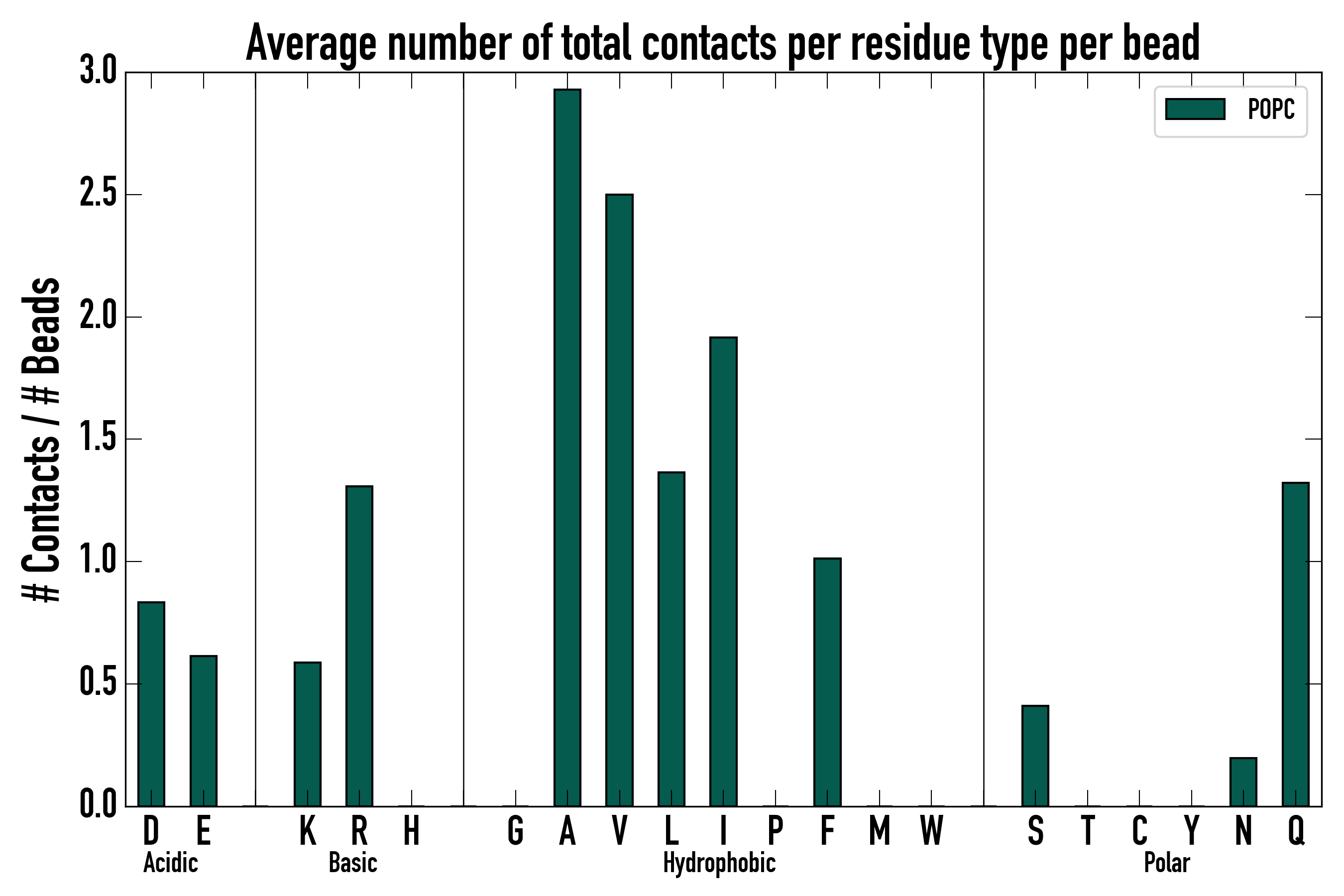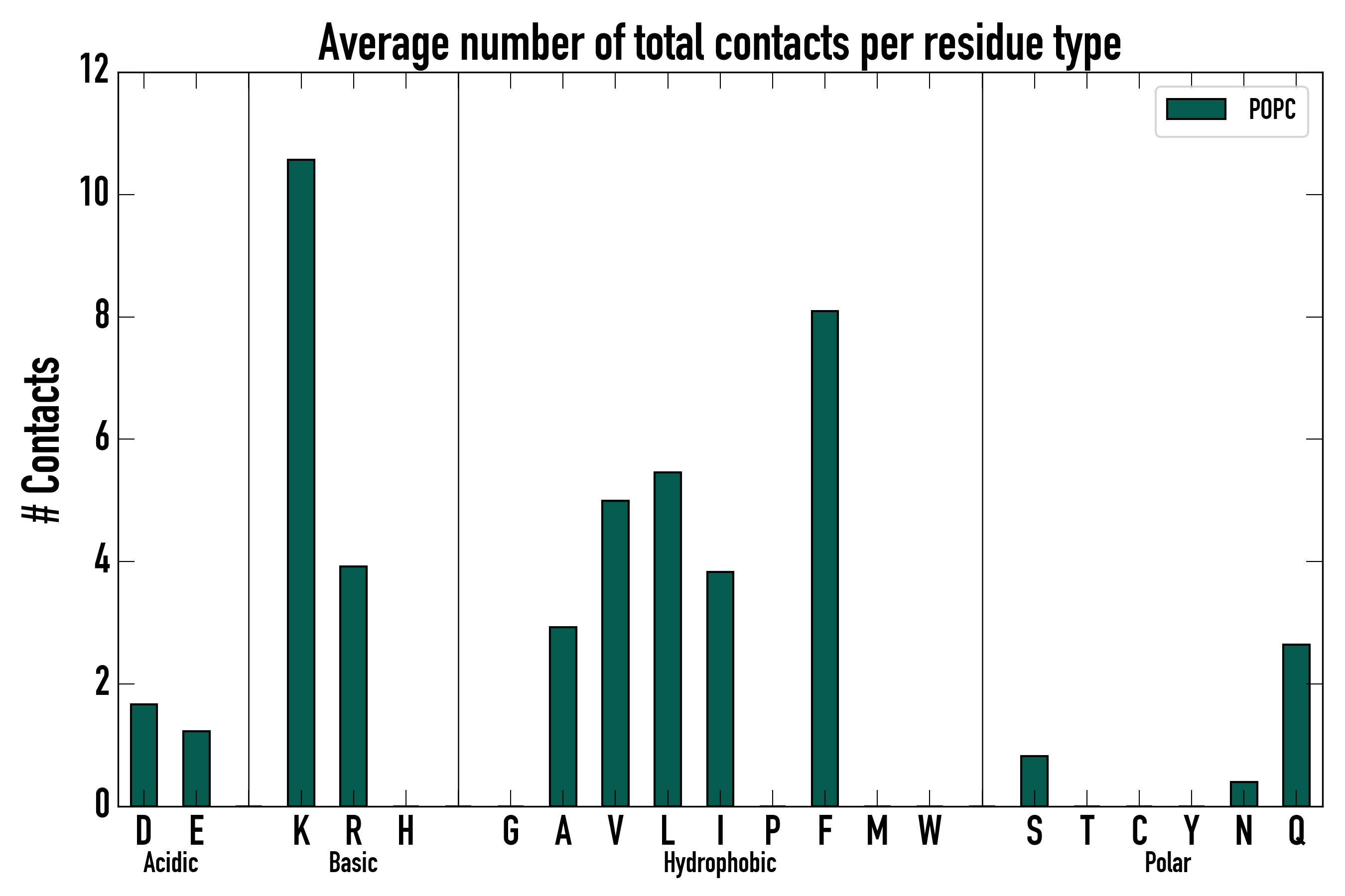 Number of total contacts per residue type: