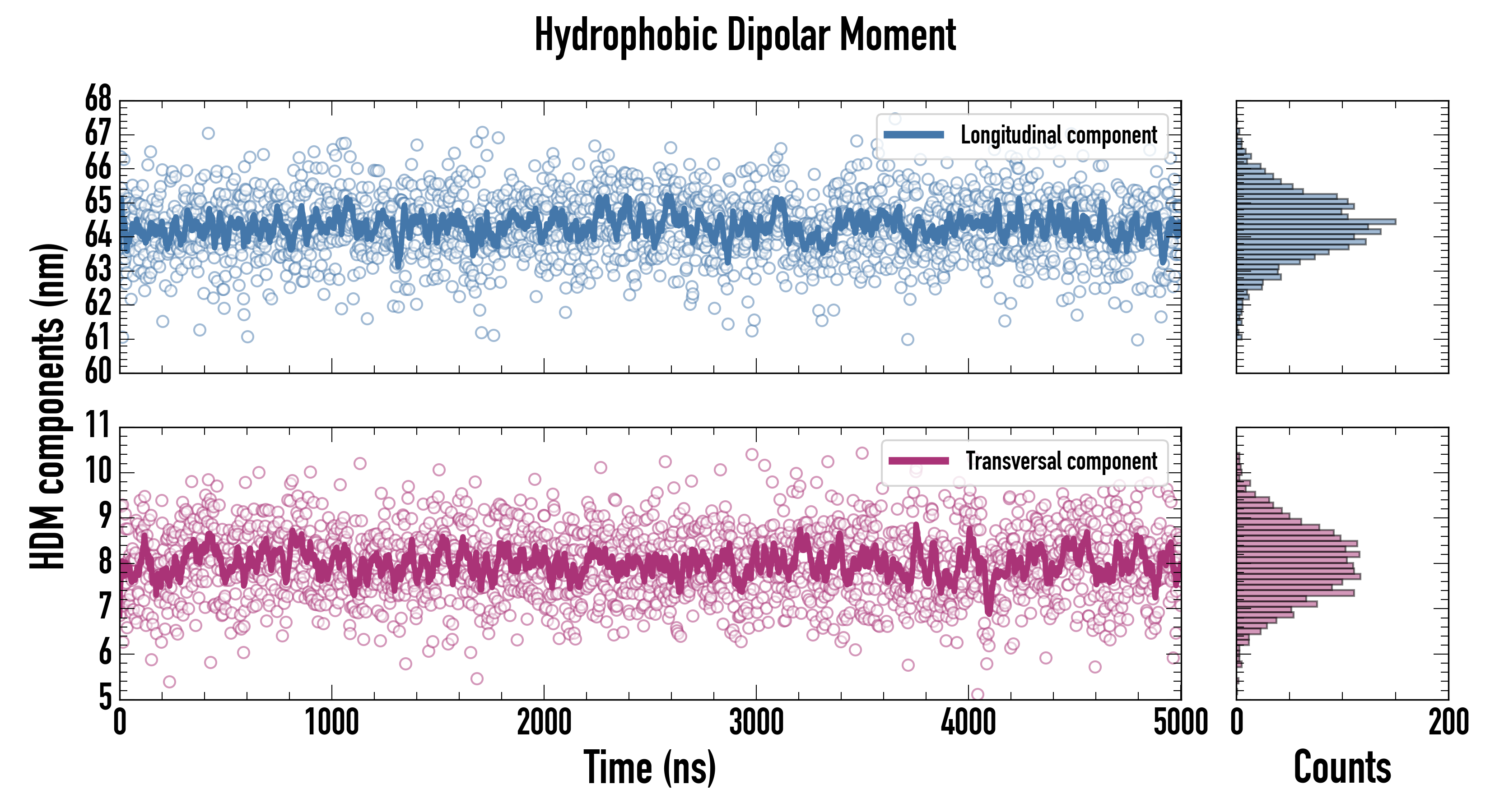Longitudinal (e nm): 18.4 Transversal (e nm): 2.63 Hydrophobic Dipolar Moment (nm): 66.8