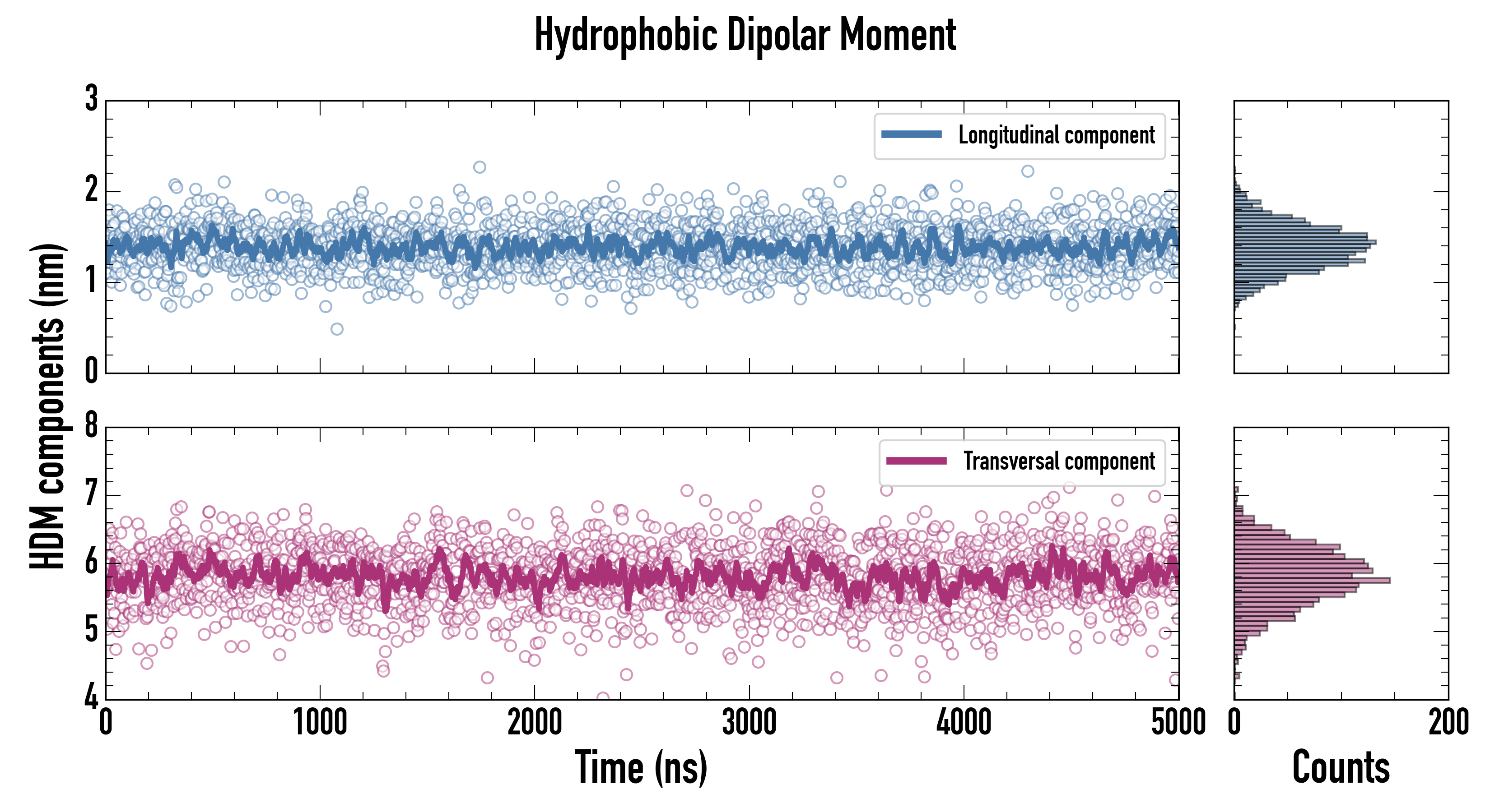 Longitudinal (e nm): 4.95 Transversal (e nm): 2.85 Hydrophobic Dipolar Moment (nm): 5.94
