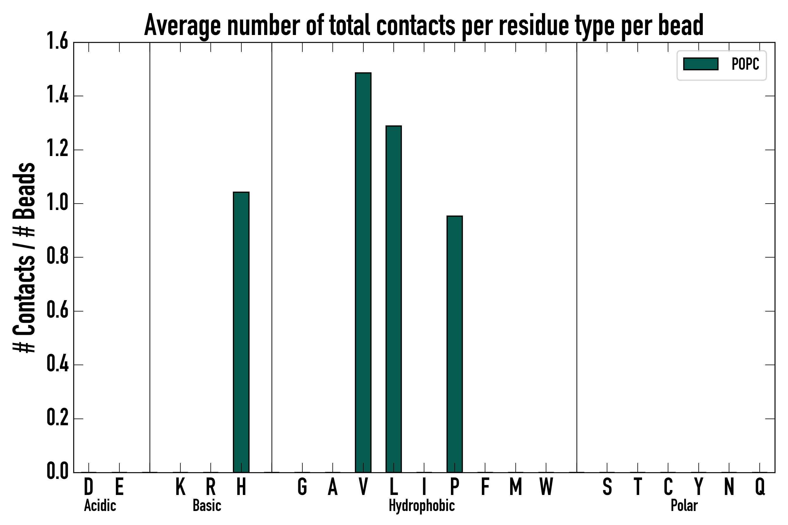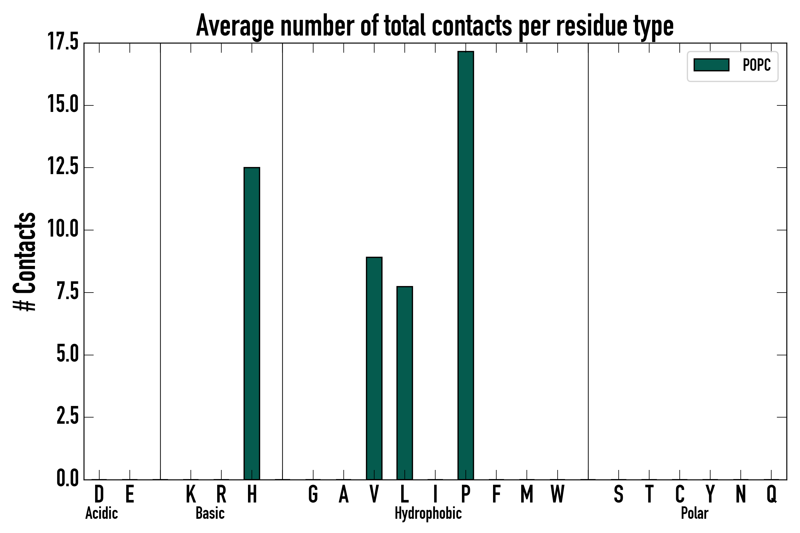 Number of total contacts per residue type: