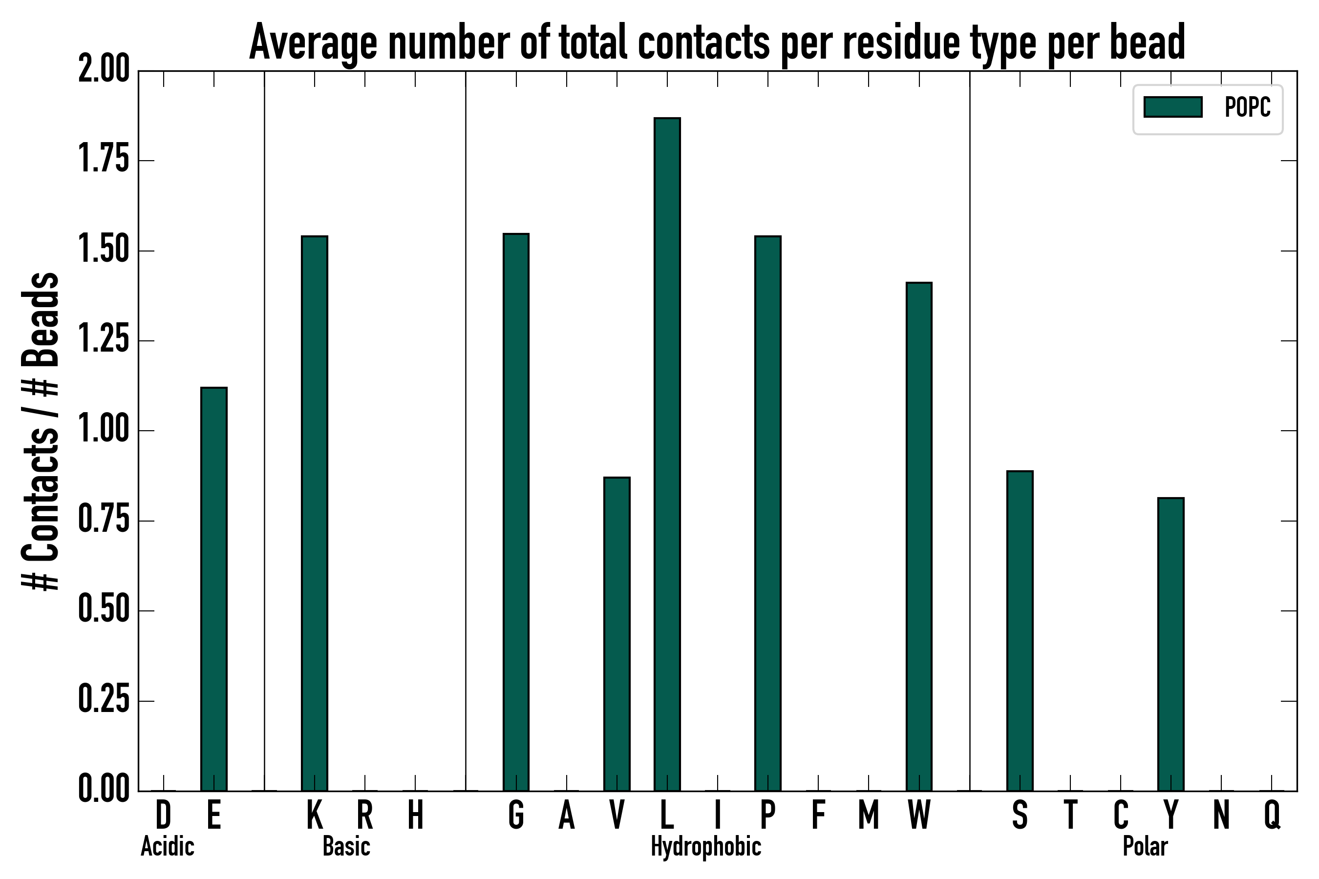 Number of total contacts per residue type: