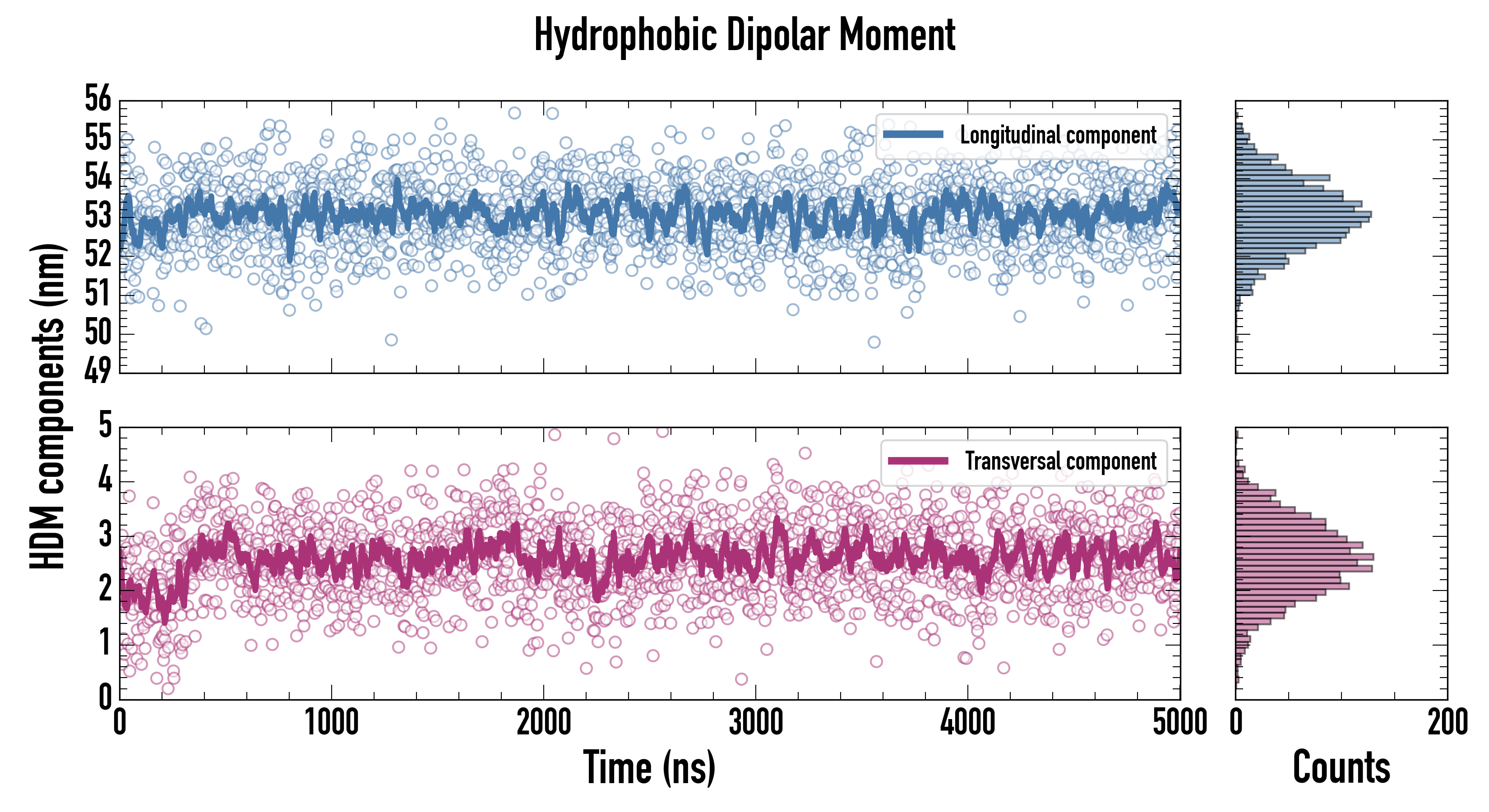 Longitudinal (e nm): 4.76 Transversal (e nm): 1.59 Hydrophobic Dipolar Moment (nm): 55.3